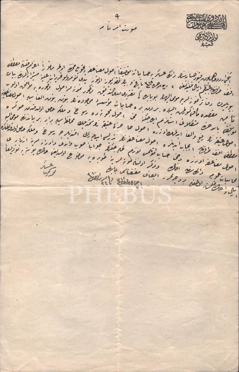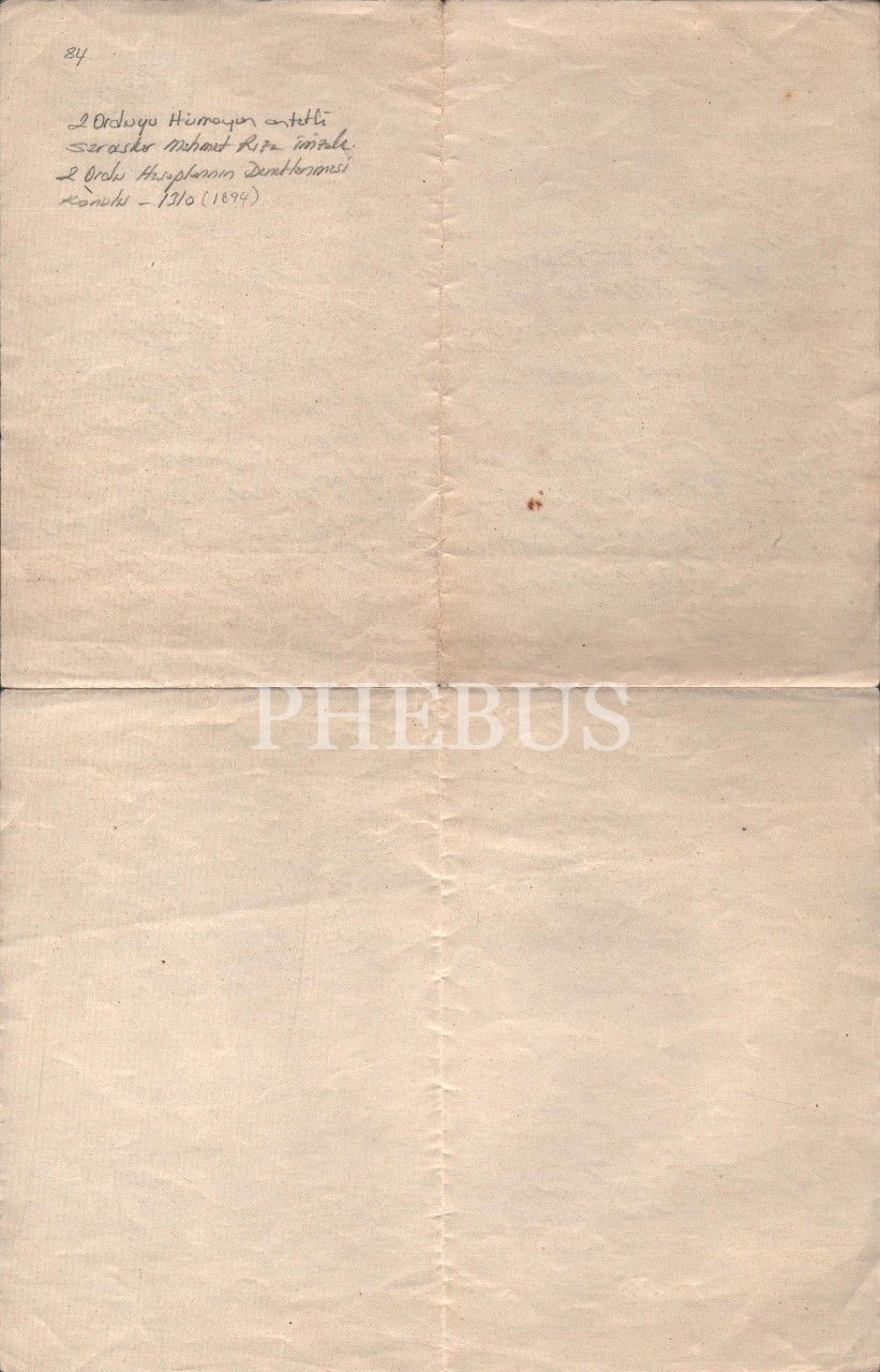 İkinci Orduyu Hümayun Antetli Serasker Mehmet Rıza Paşa Islak imzalı 1894 Tarihli Doküman