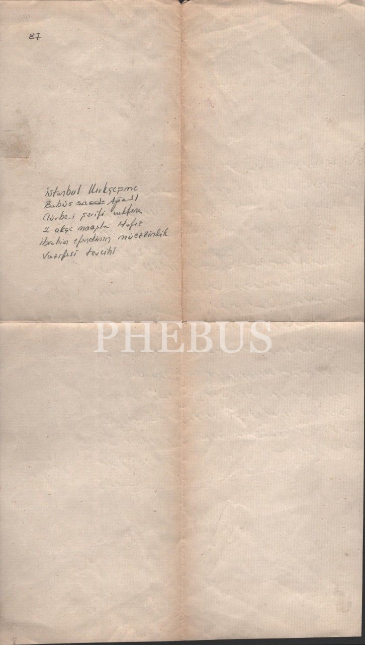 İstanbul Kırkçeşme Babüssade Ağası Türbeyi Şerifi Vakfına 2 Akçe Maaşla Hafız İbrahim Efendinin Müezzinlik Vazifesine Tevcihi Konulu Erken Dönem Tarihsiz Hüccet