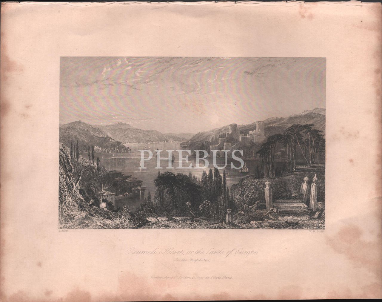 İstanbul Rumeli Hisarı Thomas Allom çizimi 27x21 cm ölçülerinde Çelik Baskı Gravür