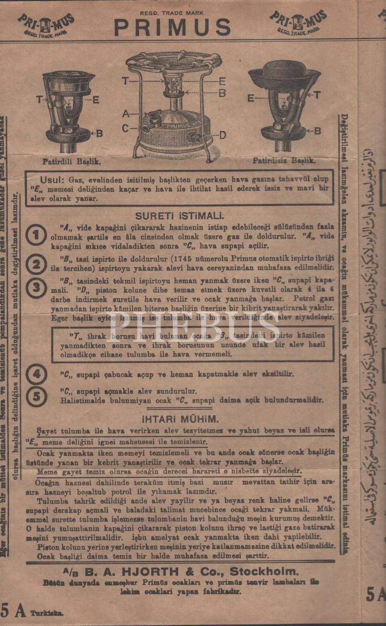 PRIMUS Gaz Ocakları Altı Lisanlı 45x25 cm ölçülerinde Afiş