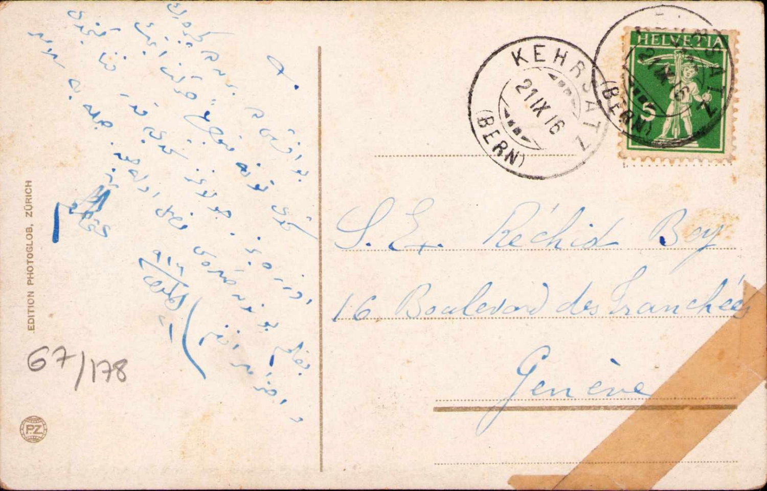 Cemal Reşit Beye gönderilmiş kartpostal, postadan geçmiş