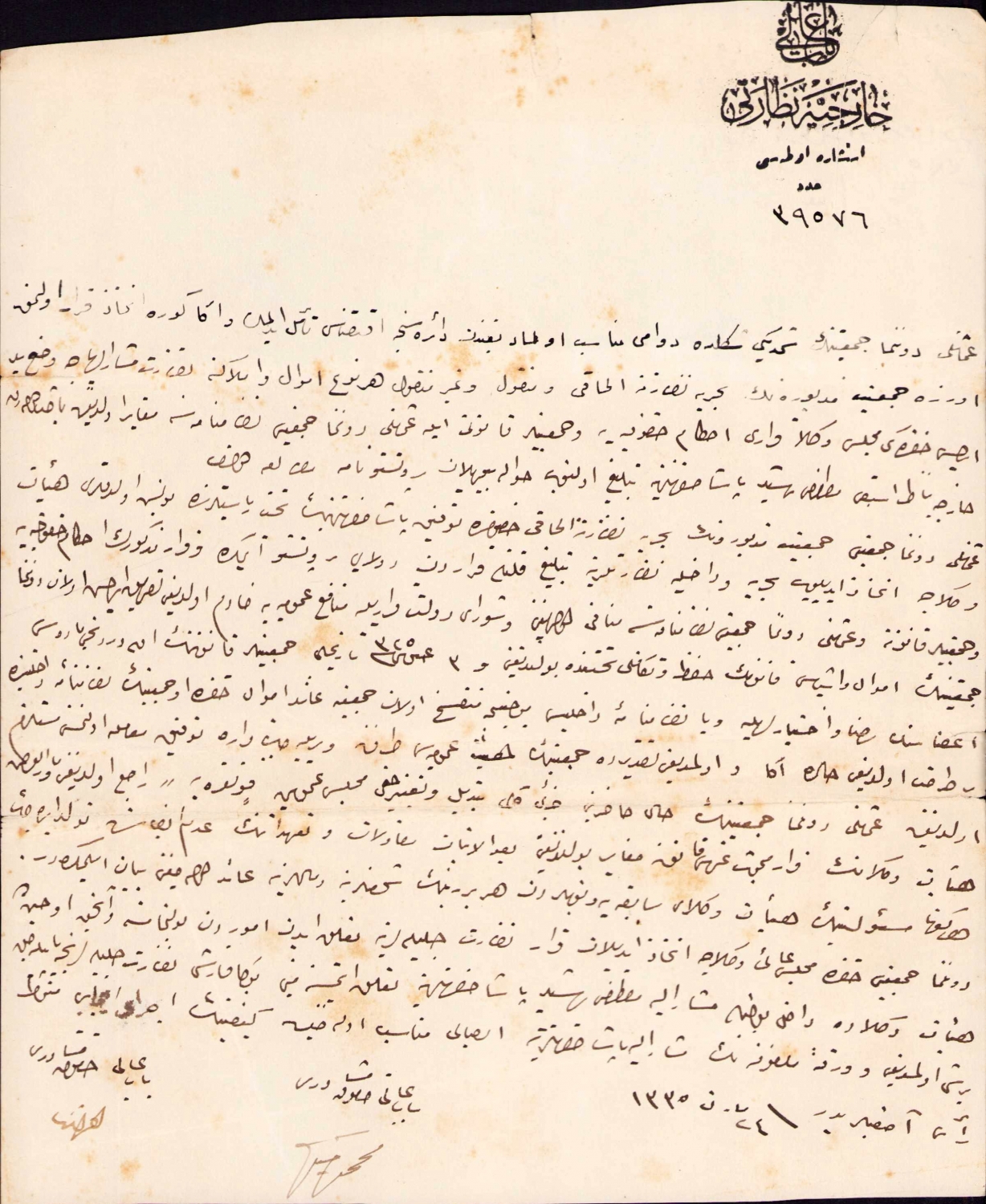 Osmanlı Hariciye Nezareti antetli, Osmanlı Donanmasının ıslahı hakkında, 1335 tarihli belge, 20x24 cm