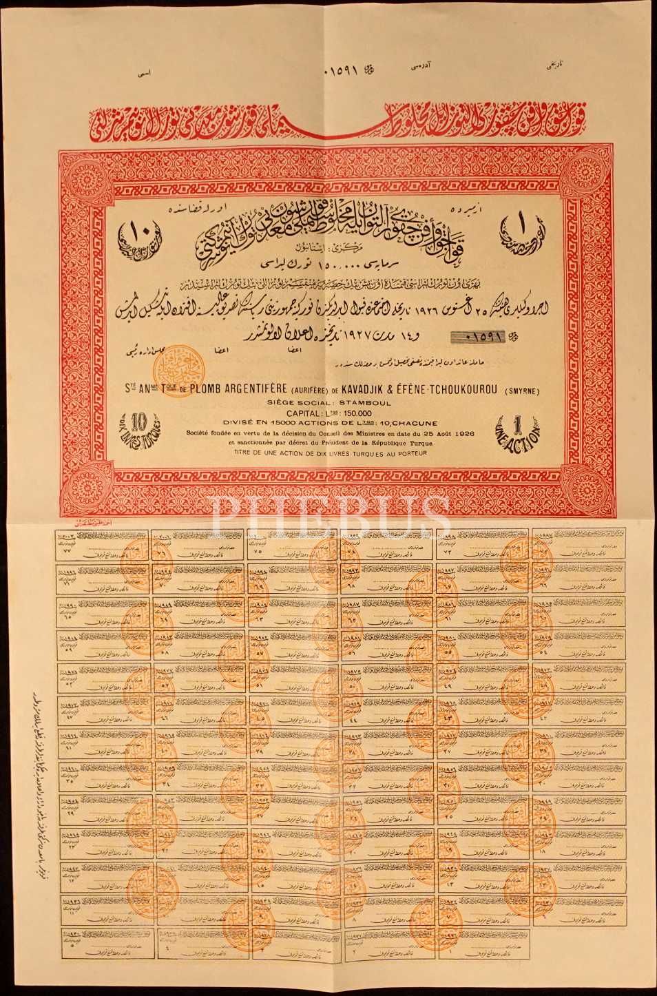İzmir Kavacık Efene Çukuru Madenleri A.Ş, 1926 Tarihli Bir Paylık Hisse Senedi