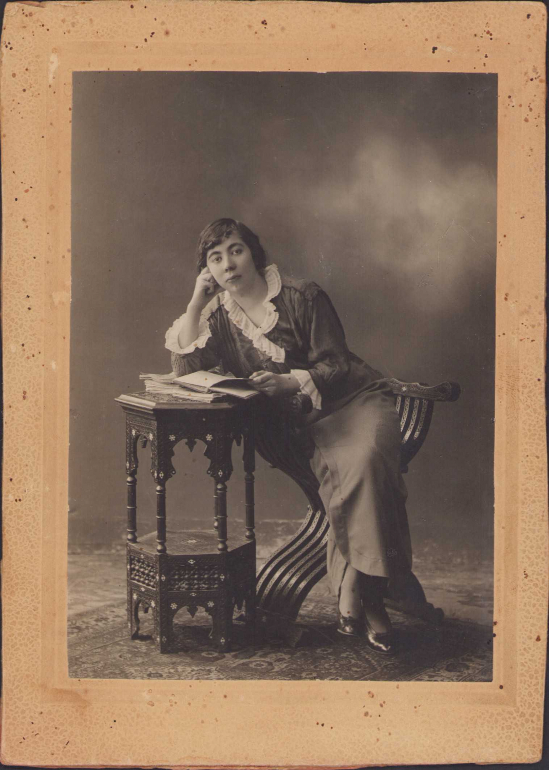 Kitap okuyan kadın fotoğrafı, 26 Temmuz 1916 tarihli, 14 x 19 cm