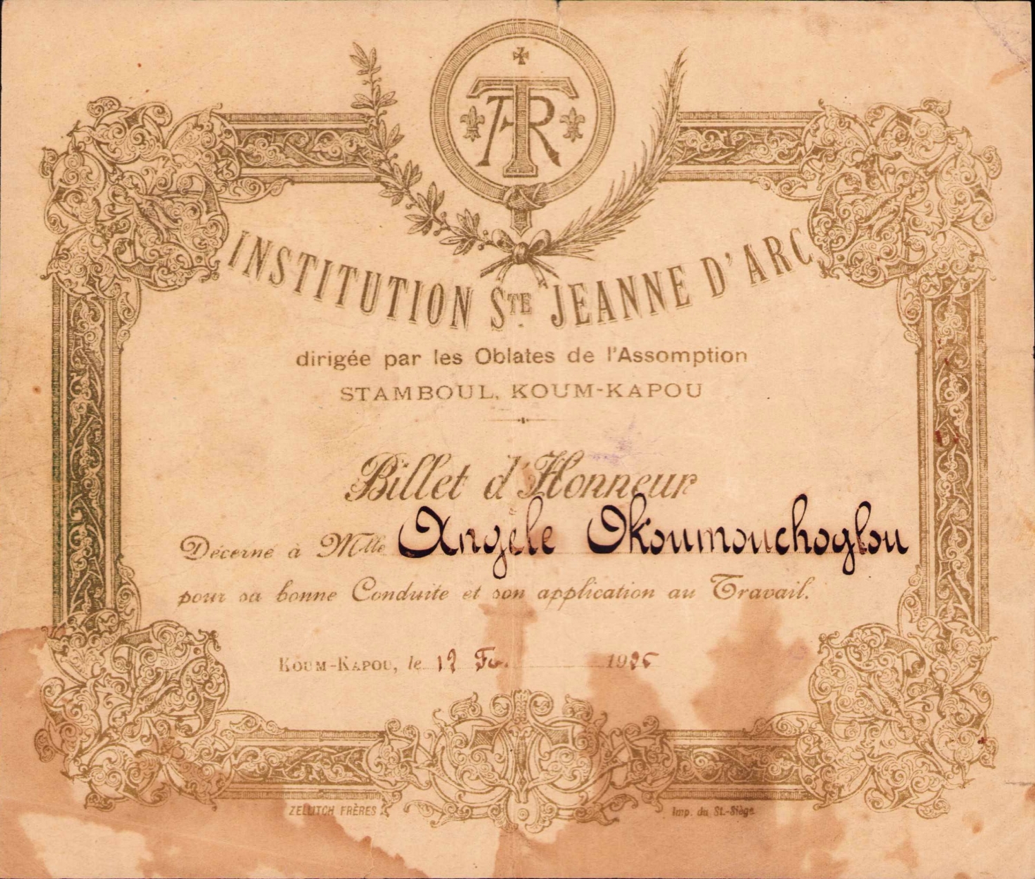 Institution S. Jeanne D'arc onur belgesi, 20x18 cm