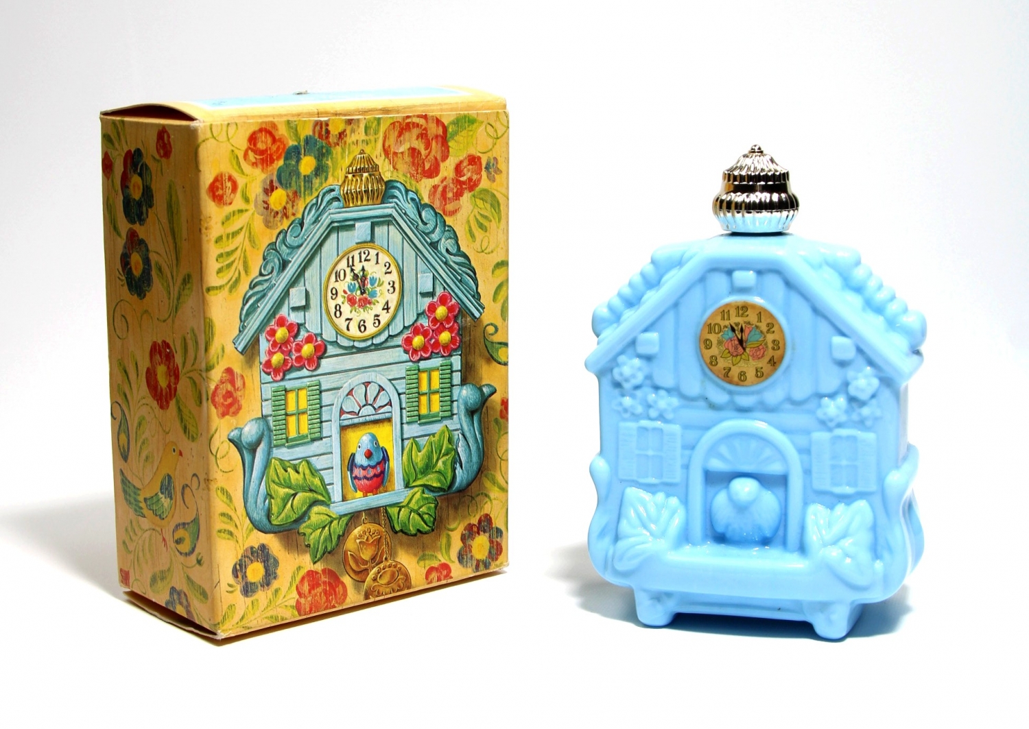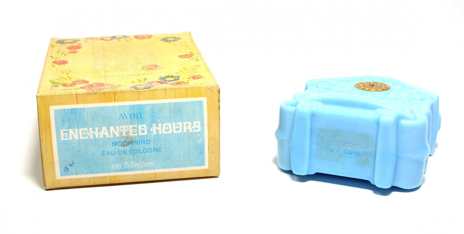 AVON orijinal kutusunda, saat formunda opalin losyon şişesi, 9x13x4 cm