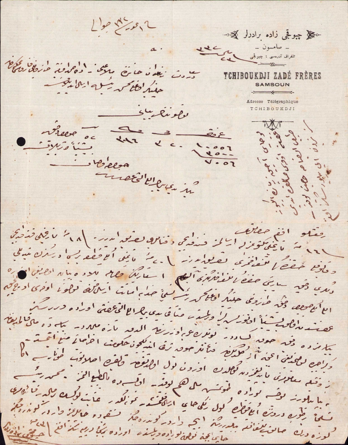 Osmanlıca - Fransızca Çubukçuzade Biraderler - Samsun antetli 1332 tarihli doküman, 21x29 cm