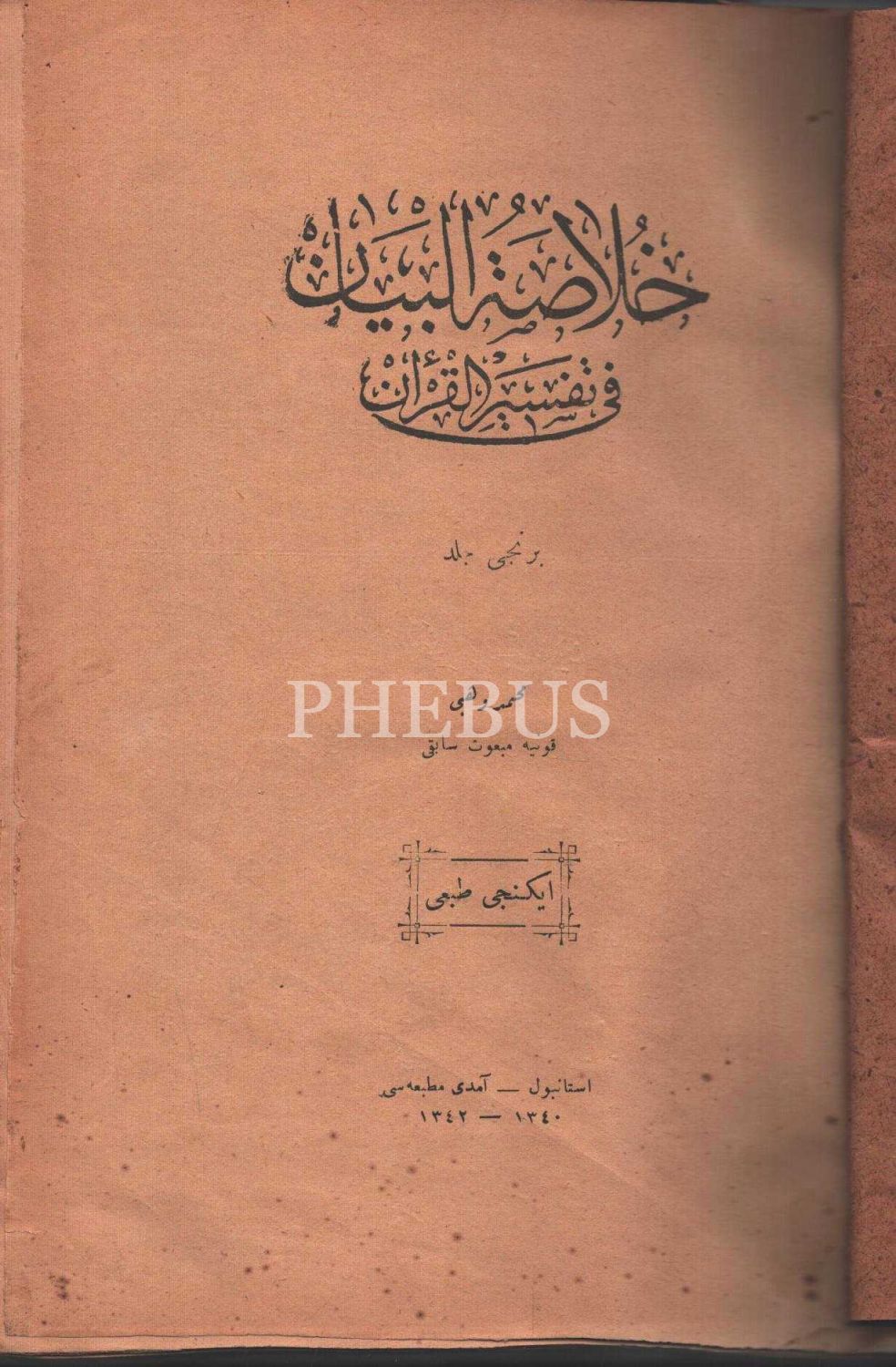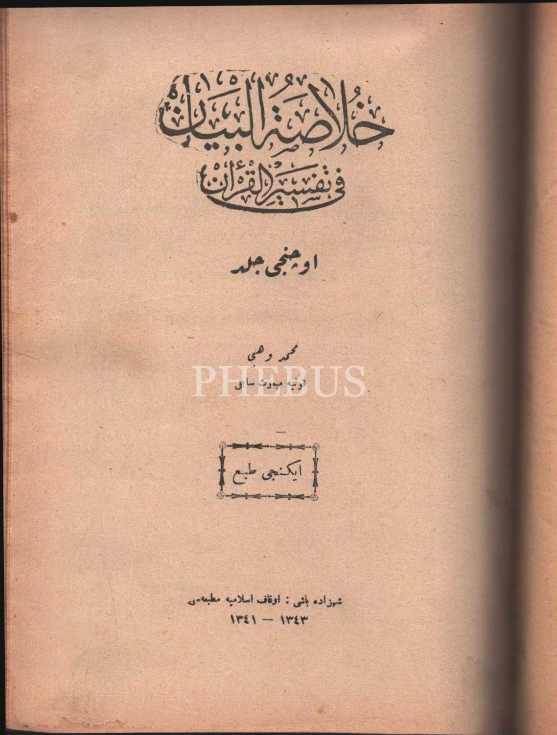 HULASATÜ´L BEYAN Fİ TEFSİR İL-KUR´AN (1, 2 ve 3. cilt bir arada), Mehmed Vehbi, İstanbul 1340-43, Amedi Matbaası, 349+299+289 sayfa, 17x25 cm...