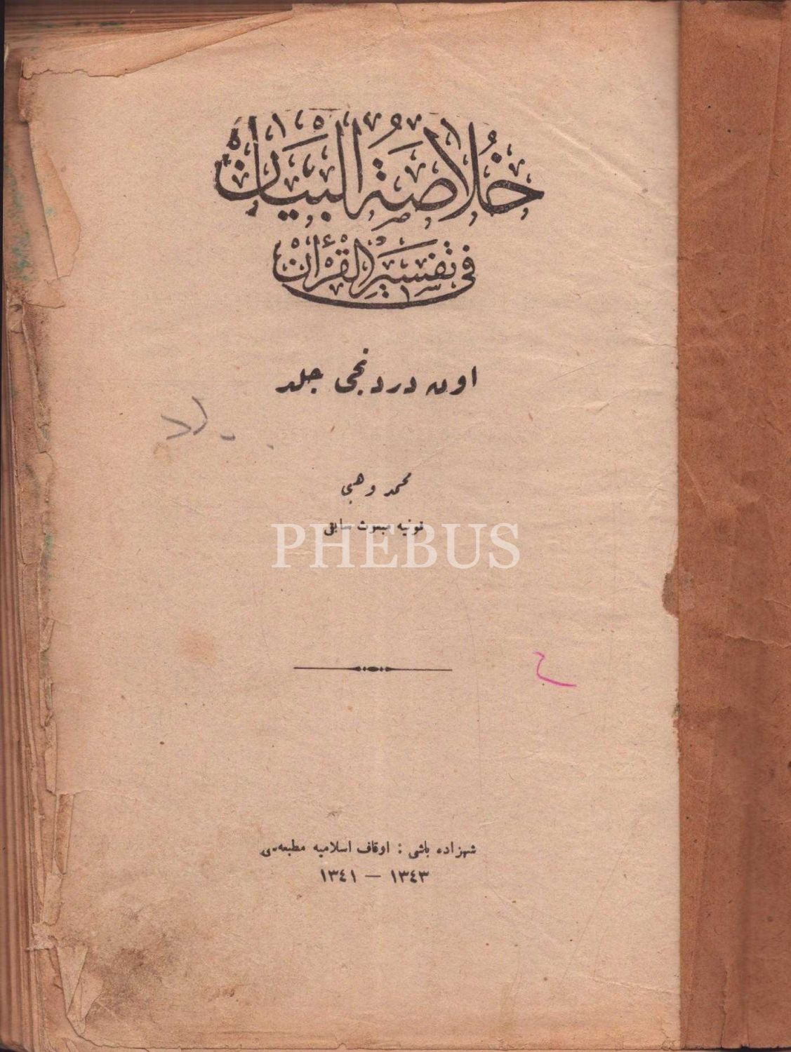 HULASATÜ´L BEYAN Fİ TEFSİR İL-KUR´AN (14. cilt), Mehmed Vehbi, Şehzadebaşı 1341-43, Evkaf-ı İslamiye Matbaası, 529 sayfa, 16x23 cm...