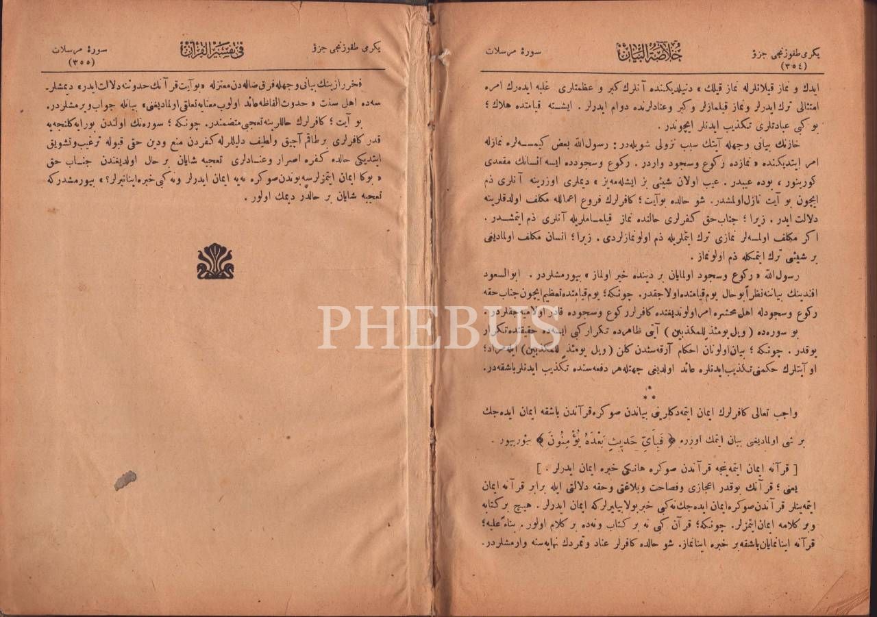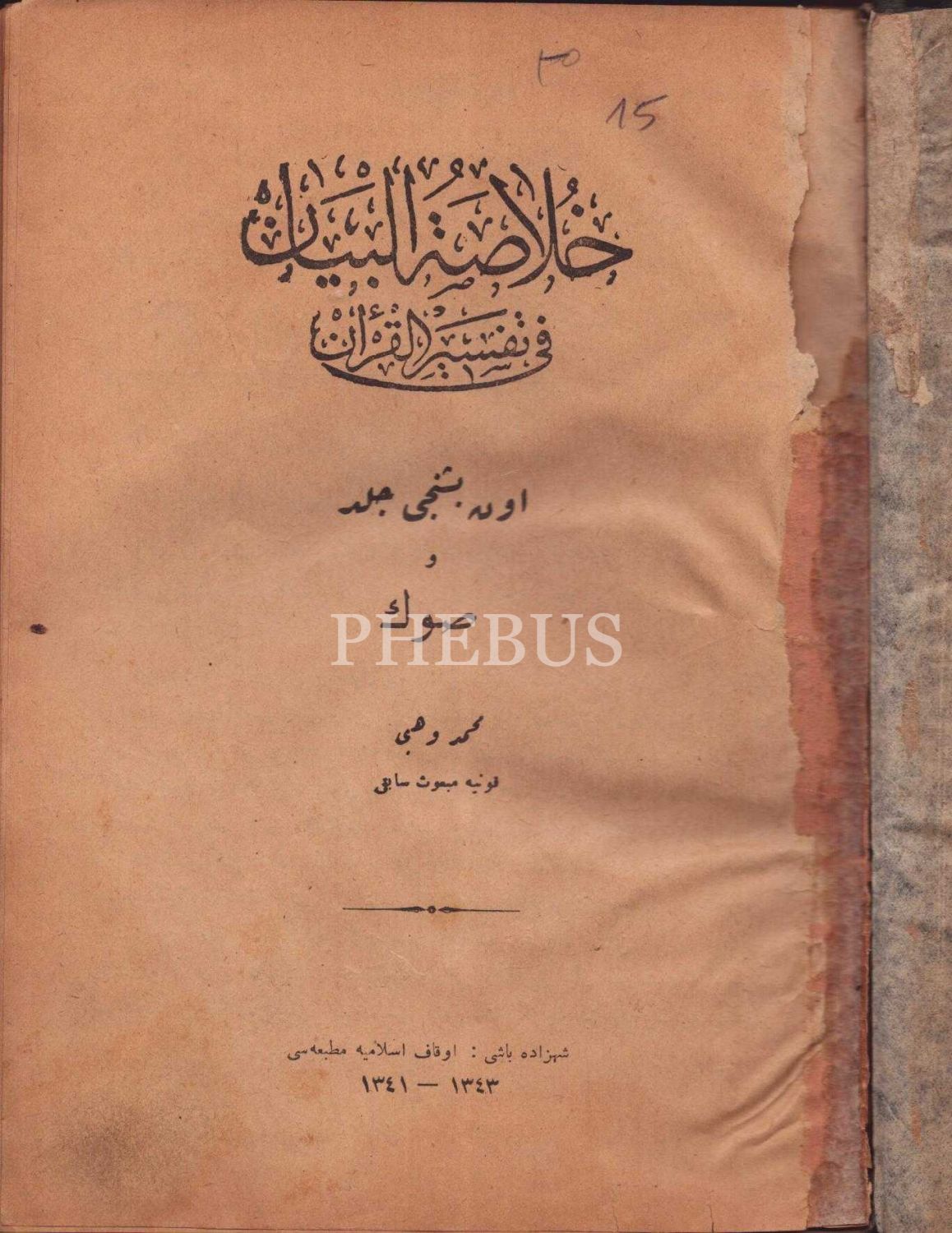HULASATÜ´L BEYAN Fİ TEFSİR İL-KUR´AN (15. cilt), Mehmed Vehbi, Şehzadebaşı 1341-43, Evkaf-ı İslamiye Matbaası, 354 sayfa, 16x23 cm...