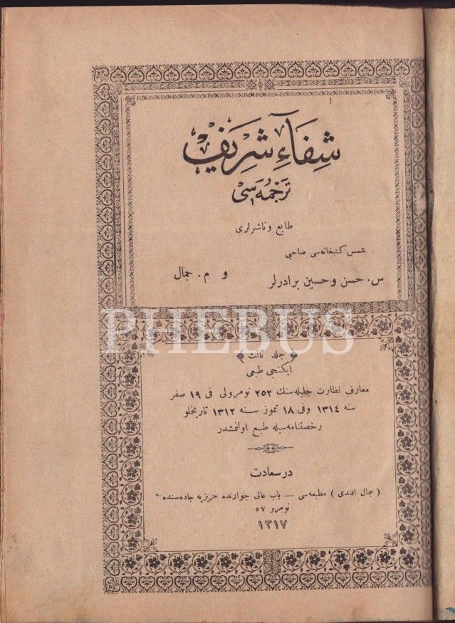 ŞİFA-İ ŞERİF TERCÜMESİ (3. cilt), M. Cemal, 1317, Cemal Efendi Matbaası, 462 sayfa, 18x25 cm...