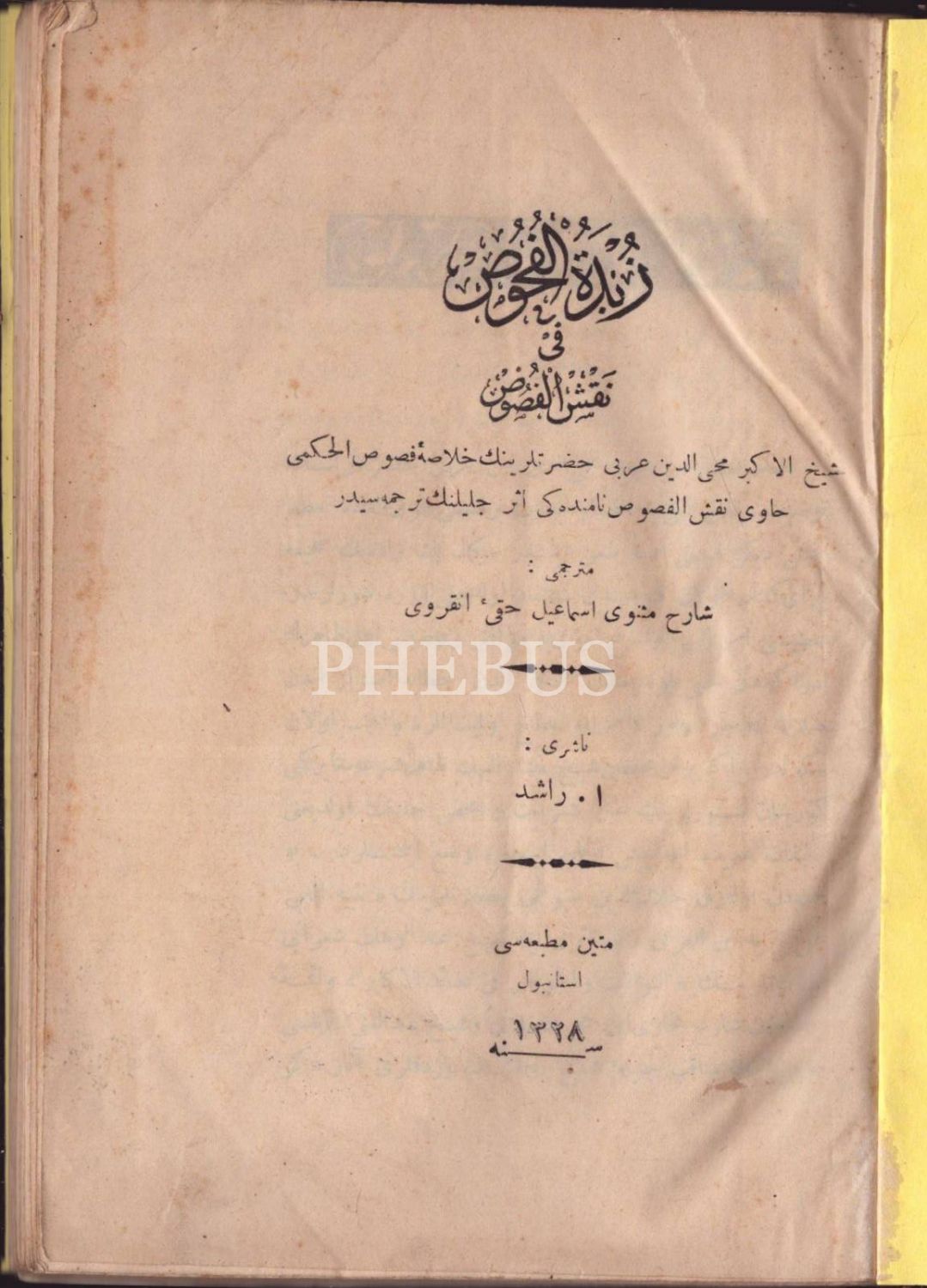 ZÜBDETÜ´L FUHUS Fİ NAKŞÜ´L FUSUS, İsmail Hakkı Ankaravi, 1327, Metin Matbaası, 127 sayfa, 15x21 cm...