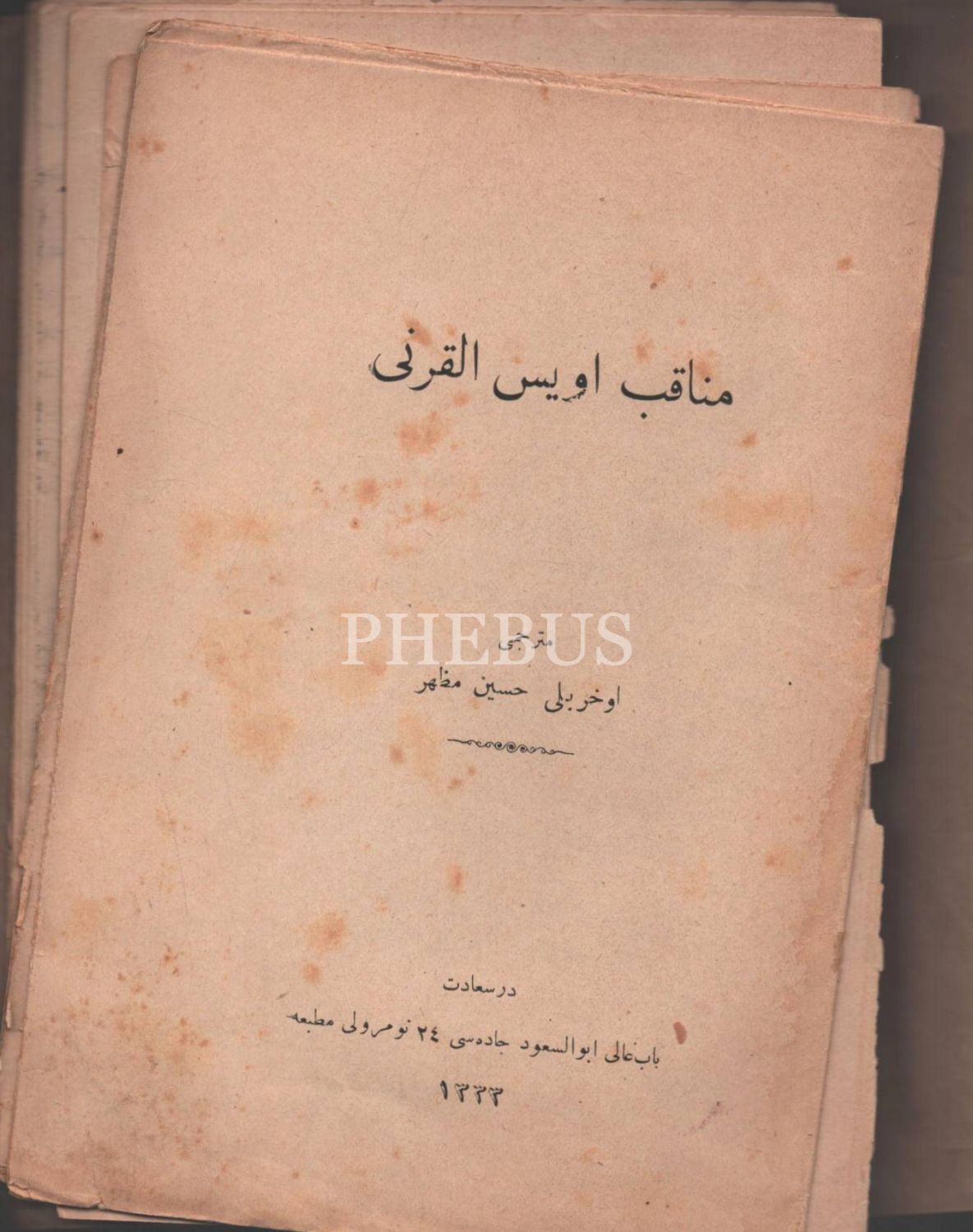 MENAKIB-I ÜVEYS EL-KARNİ, Cemâleddin Muhammed bin Es-Sıddîk El-Hâs El-Hanefî El-Yemenî Ez-Zebîdî, mütercim: Ohrili Hüseyin Mazhar, İstanbul 1333, 48 sayfa, 15x22 cm...