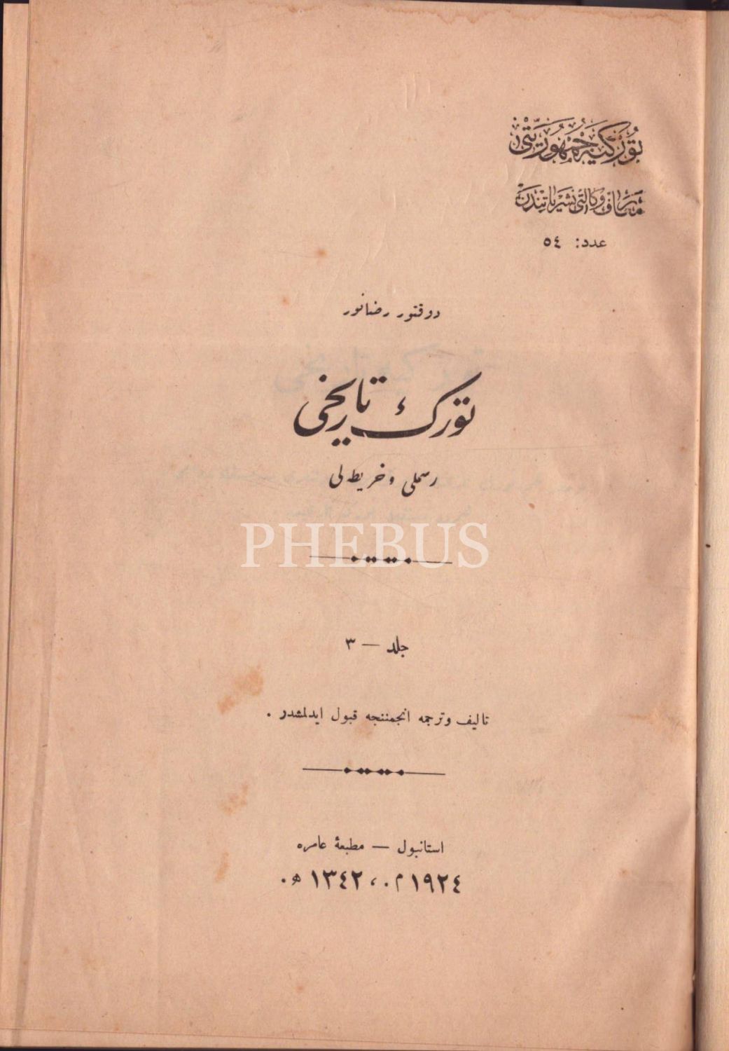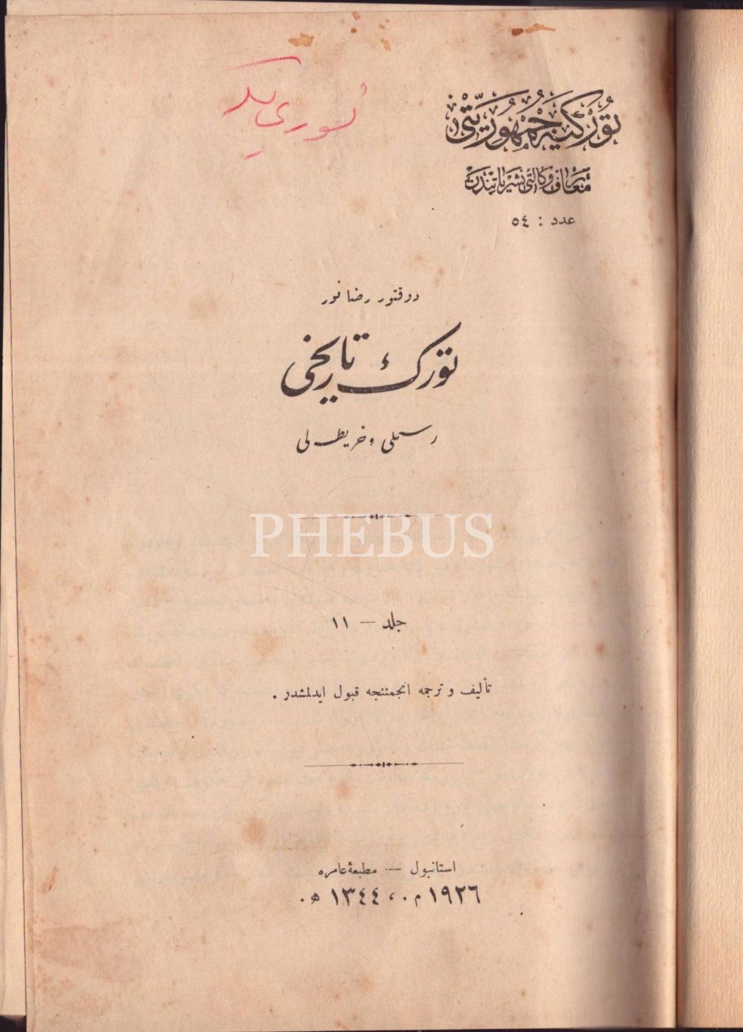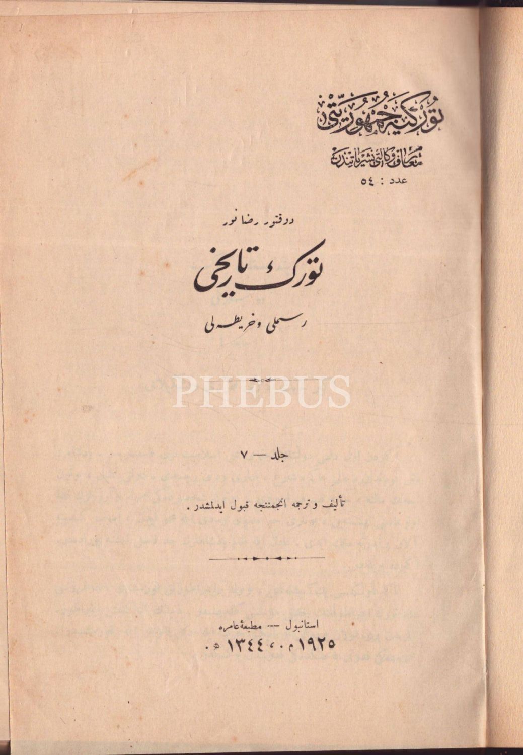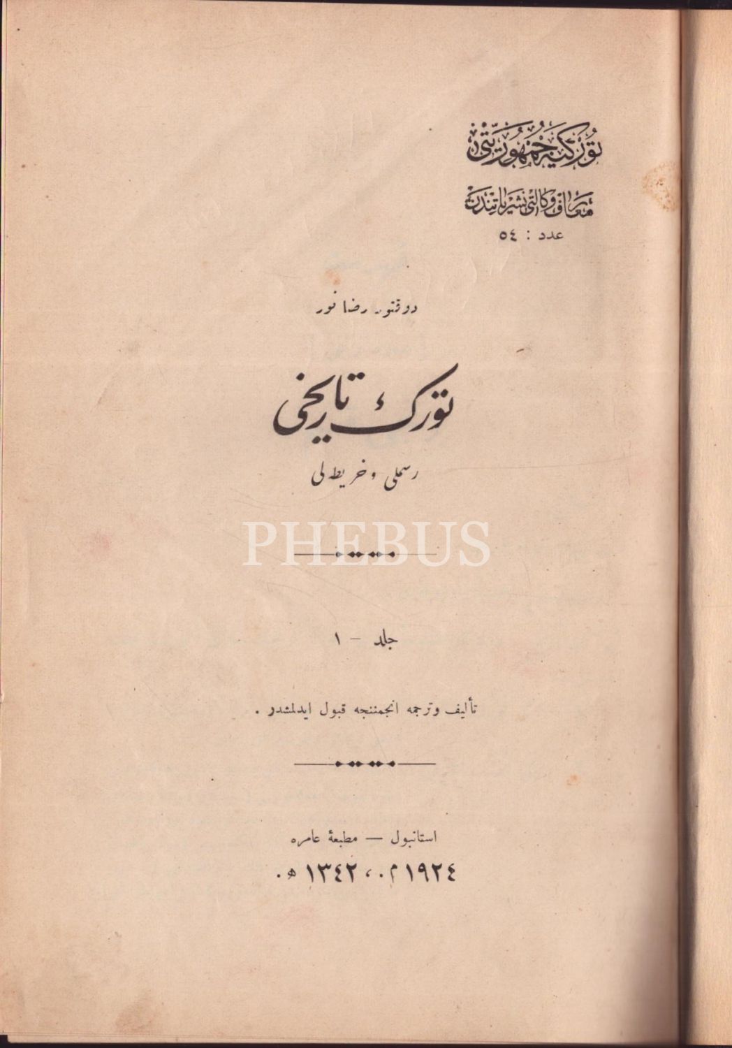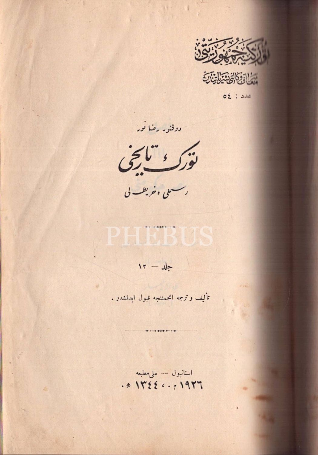 TÜRK TARİHİ (12 cilt takım), Rıza Nur, İstanbul 1342-44, Matbaa-i Amire, 17x25 cm...
