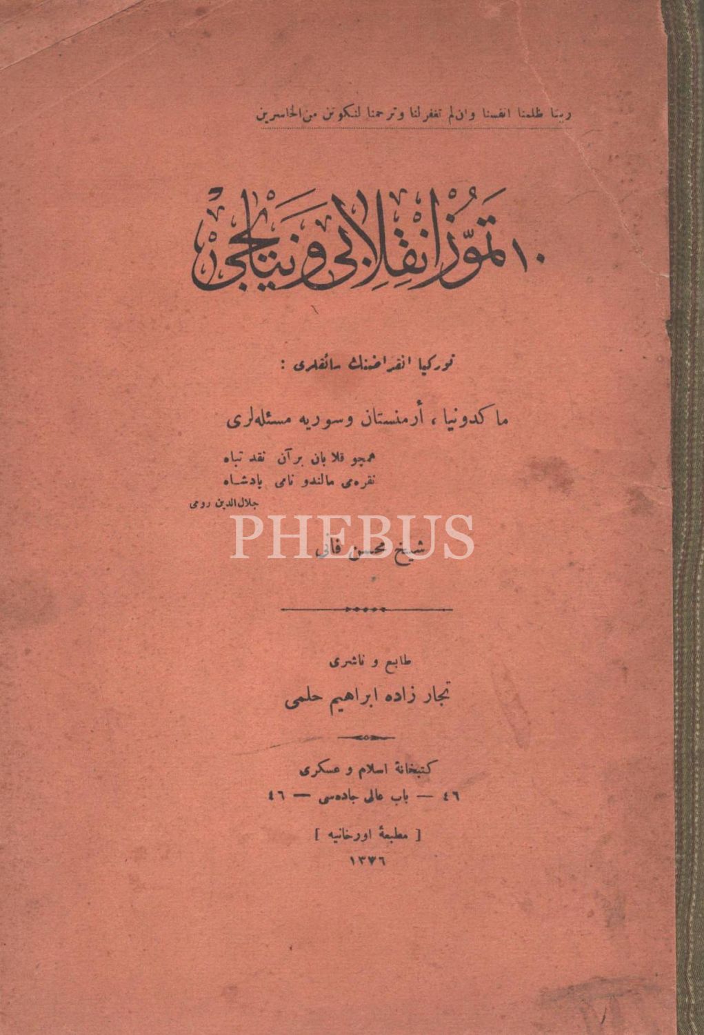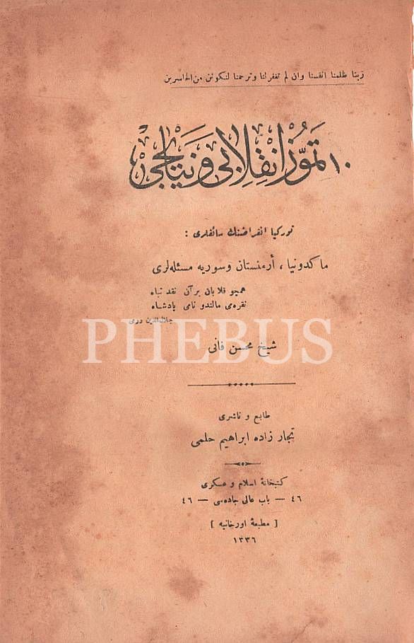 10 TEMMUZ İNKILABI VE NETAYİCİ, Şeyh Muhsin-i Fânî, 1332, Matbaa-i Orhaniye, 198 sayfa, 17x25 cm...