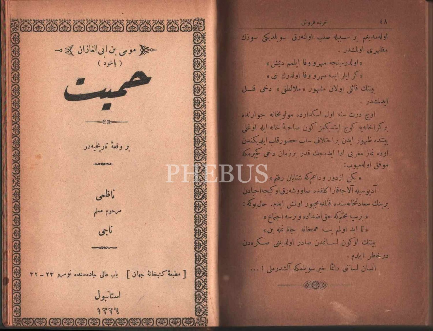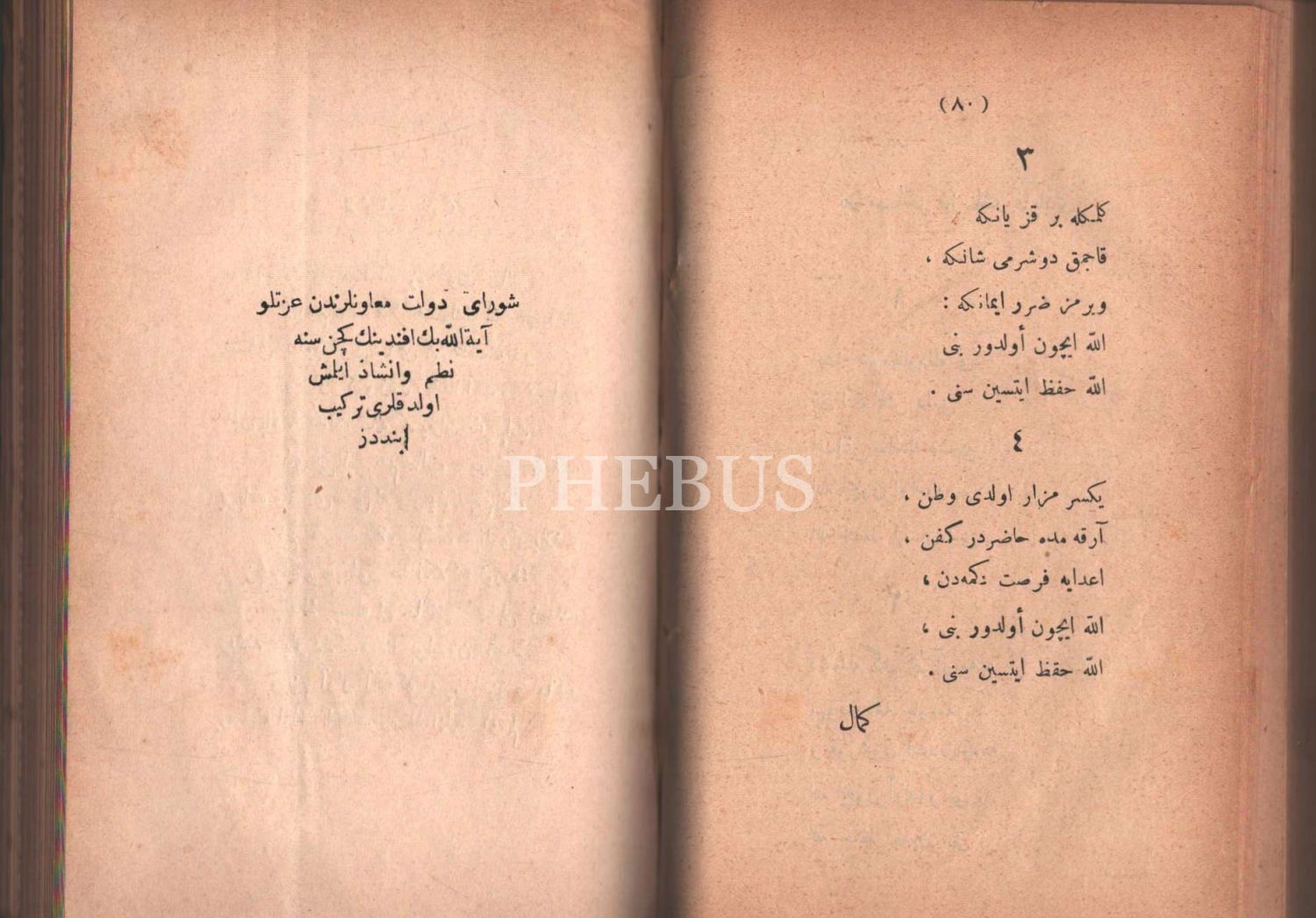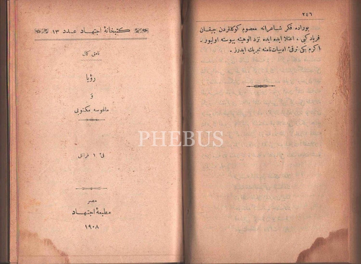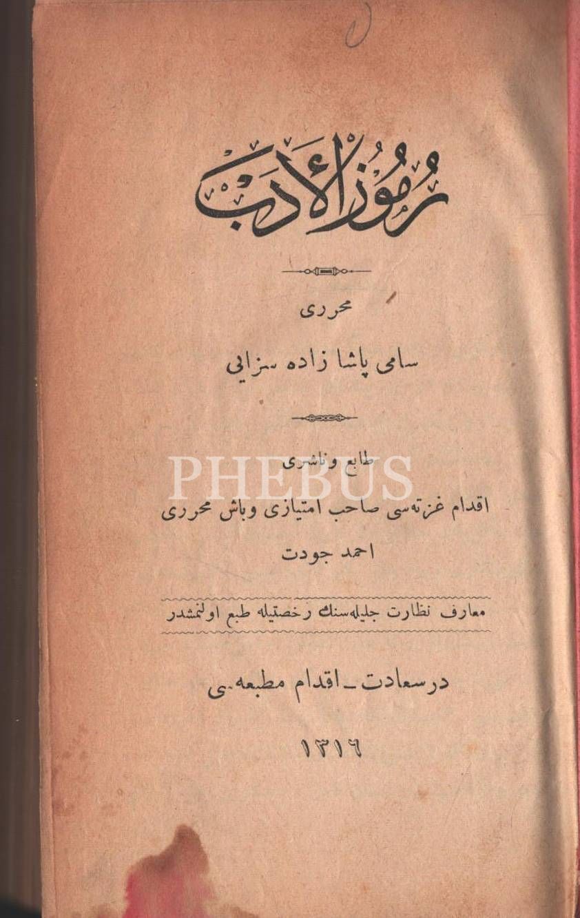 1. RUMUZU´L EDEB, Sami Paşazâde Sezai, İstanbul 1312, İkdam Matbaası, 246 sayfa 2. RÜYA VE MAĞUSA MEKTUBU, Namık Kemal, Mısır 1908, Matbaa-i İctihad, 80 sayfa 3. TERKİB-İ BEND, Ayetullah Bey, 15 sayfa 4. HURDE-FURUŞ (1 ve 2. kısım), Muallim Naci, 1302, Bahriye Matbaası, 48+64 sayfa 5. HAMİYET, Muallim Naci, İstanbul 1326, Matbaa-i Kütüphane-i Cihan, 31 sayfa
