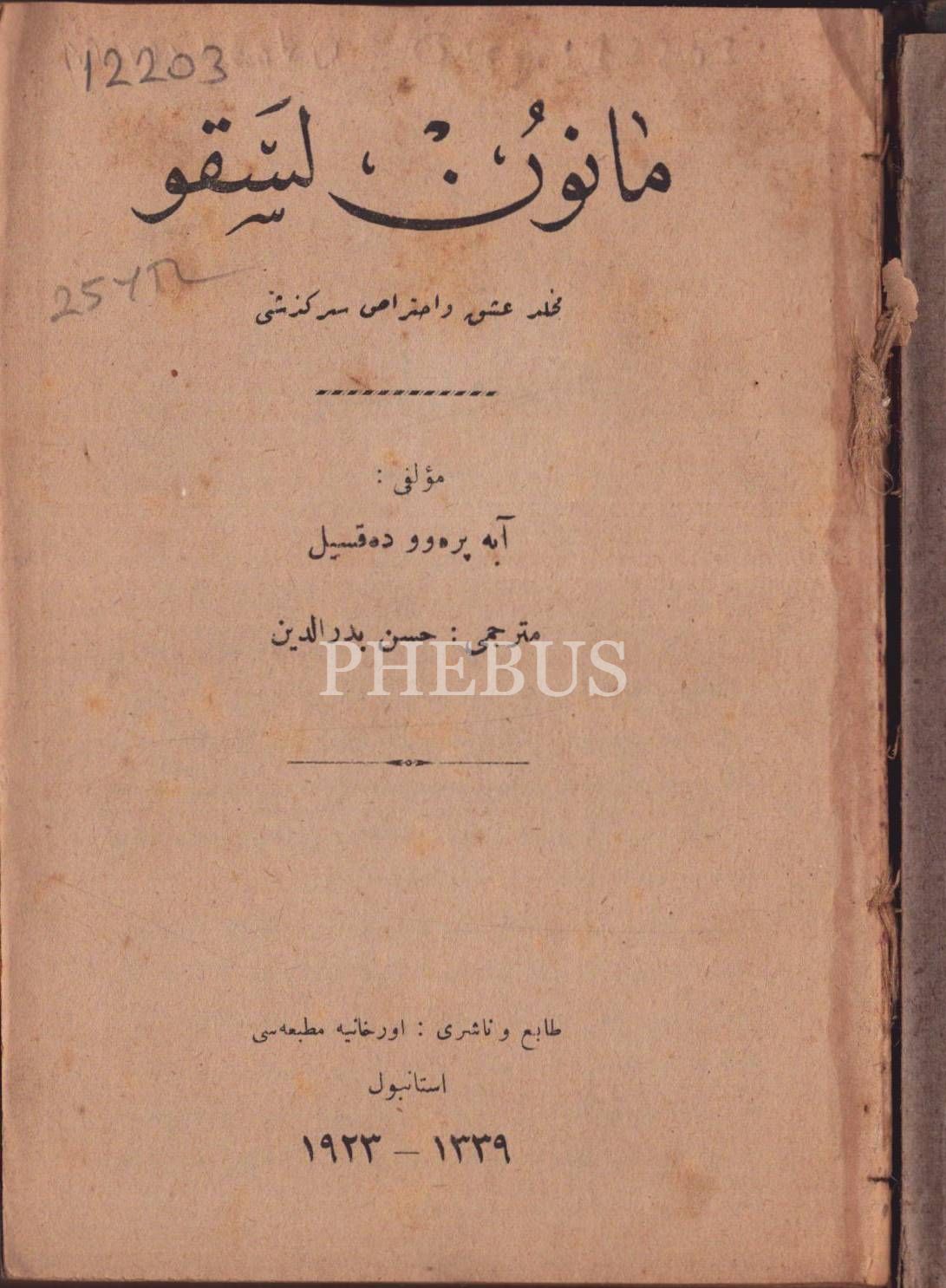 MANON LESKO, Abbe Prévost, tercüman: Hasan Bedrettin, 1339, Orhaniye Matbaası, 234 sayfa, 14x20 cm...