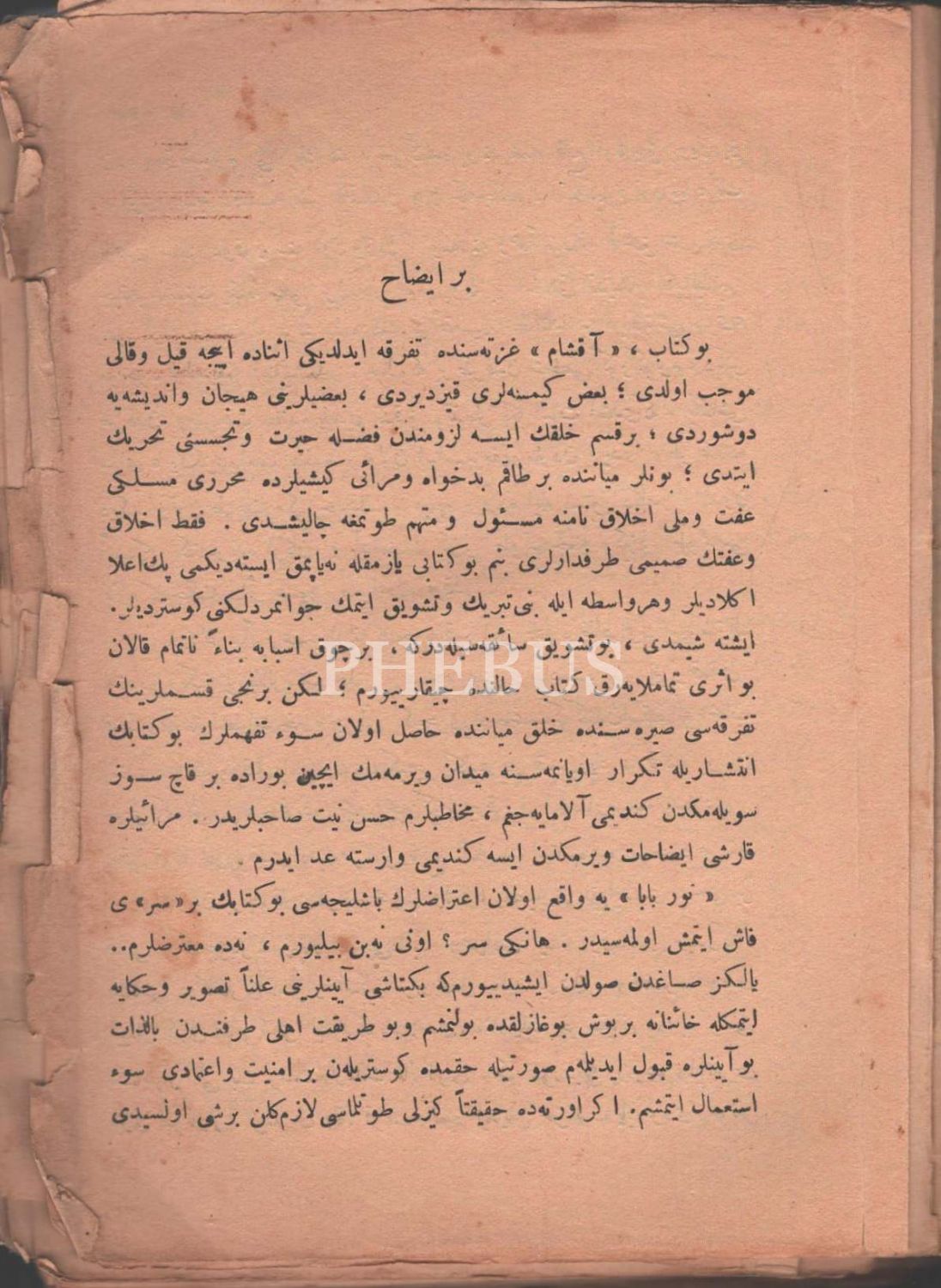 Sayfa kenarlarında ve sırtında yıpranmalar vardır. Bazı sayfalar kitaptan ayrılmıştır.