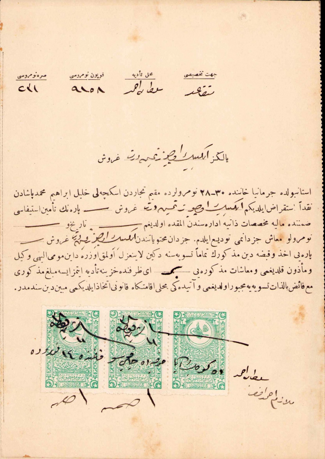 Osmanlıca maaş cüzdanı, 1338 tarihli, iki sayfa, 14x20 cm