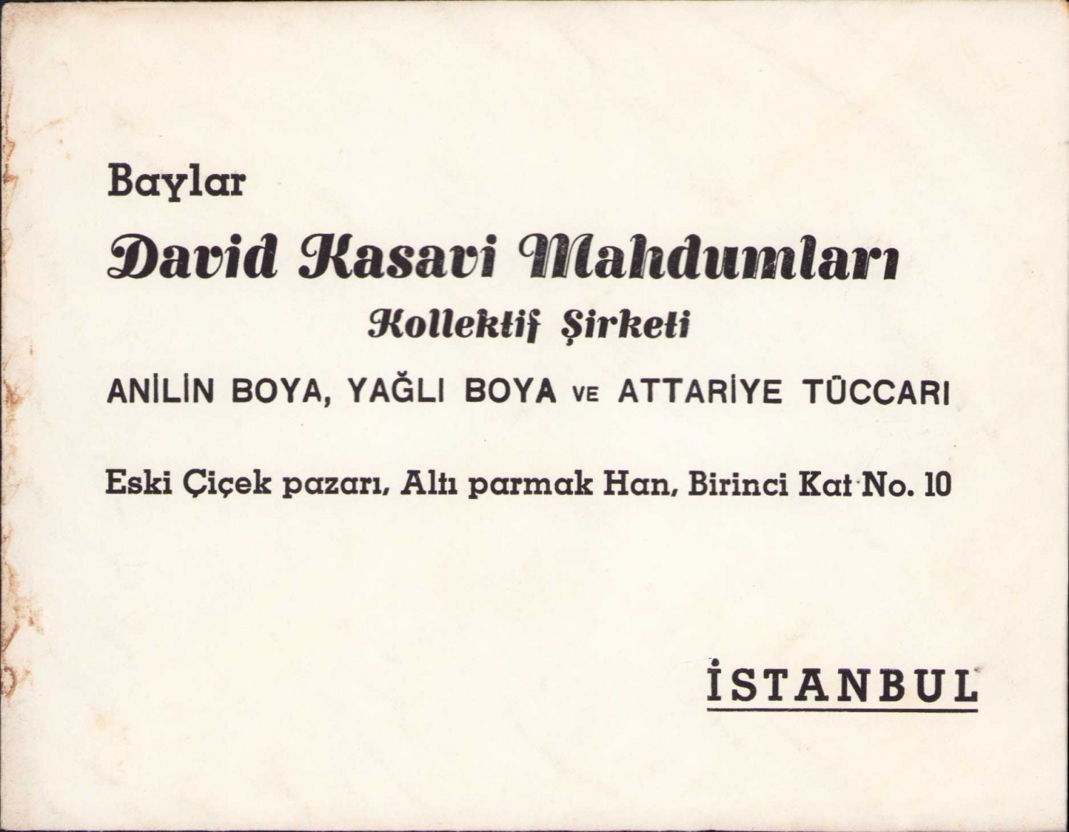 Baylar David Kasavi Mahdumları Kollektif Şirketi - anilin boya, yağlı boya ve attariye tüccarı antetli zarf