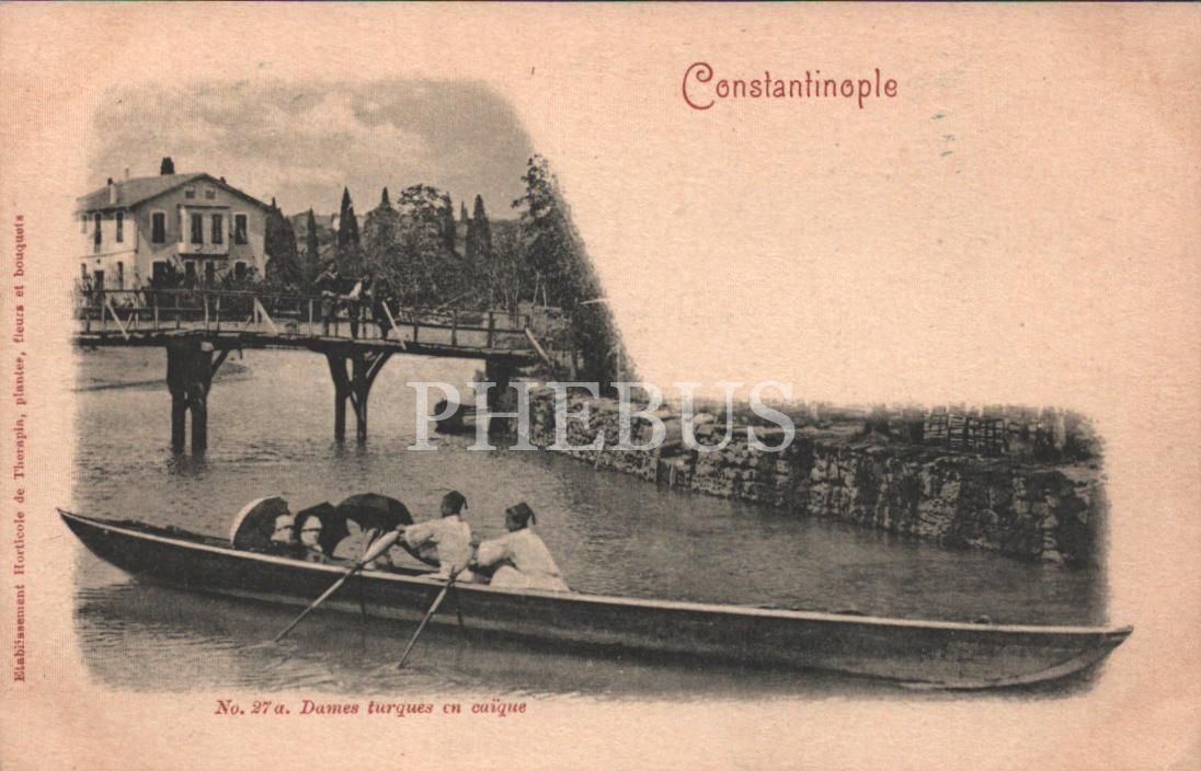 Kayık gezintisi yapan Osmanlı kadınları, "Dames turques en caique, Constantinople", ed. Etablissement Horticole de Therapia..., 14x9 cm...