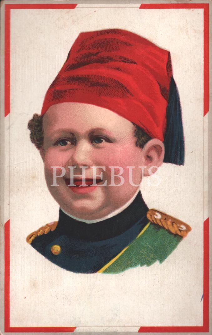 Fesli ve üniformalı sevimli çocuk, 9x14 cm...