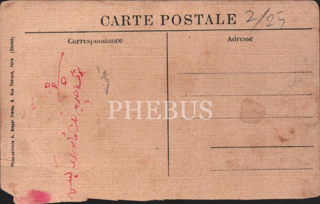 Kartpostalın alt bölümü kesilmiş, kenarları yıpranmış haliyle.