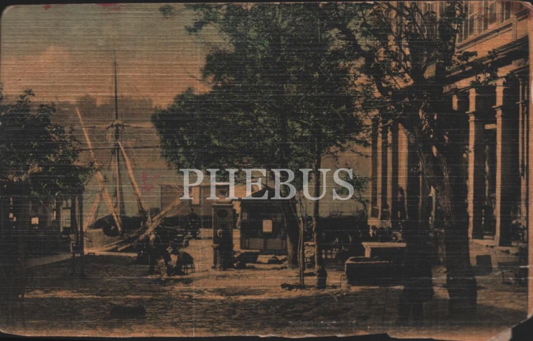 İpek kartpostal: Kandilli İskele Meydanı, fotoğraf-boyama: A. Breger Freres, Paris, 14x8,5 cm...