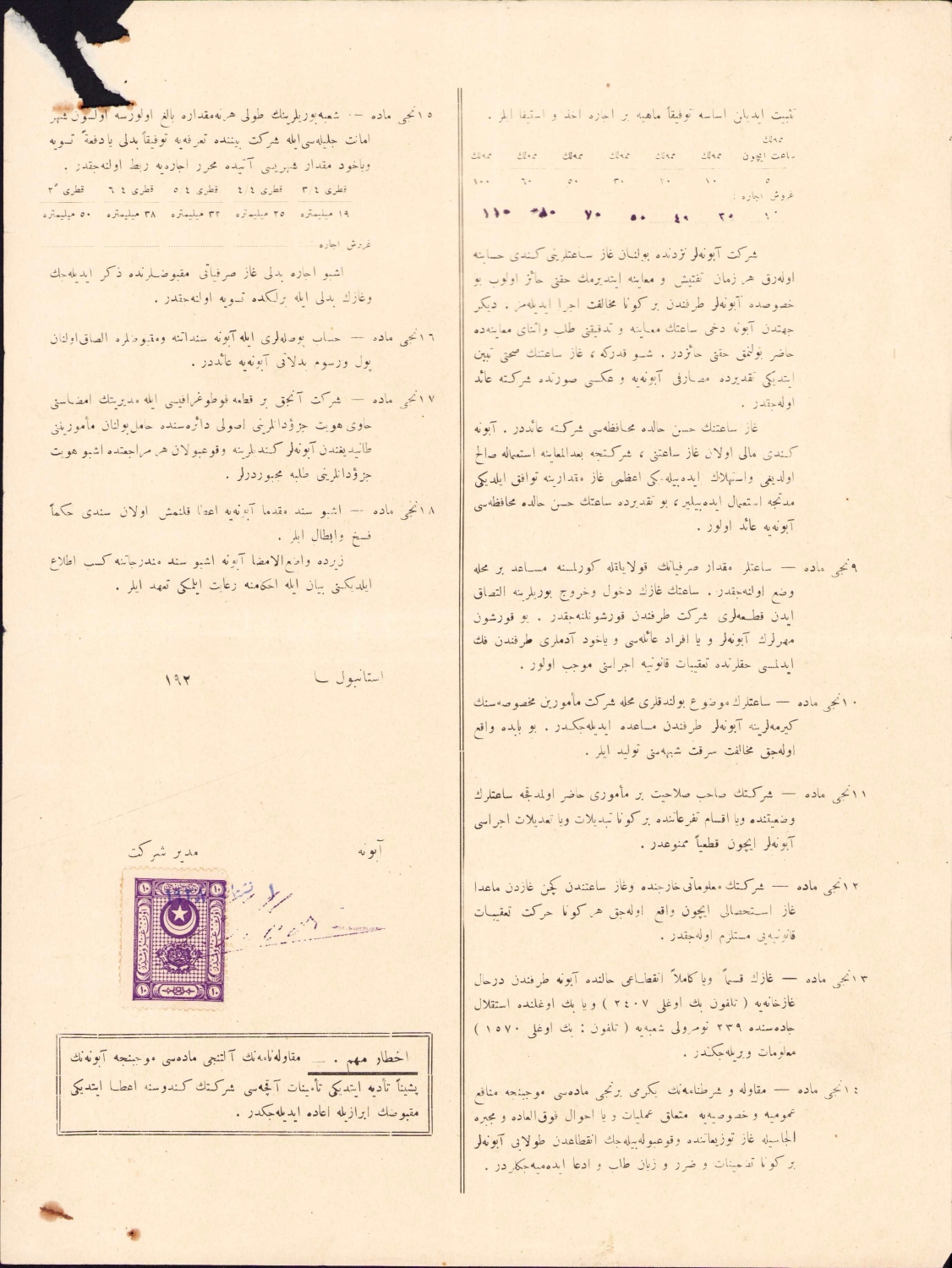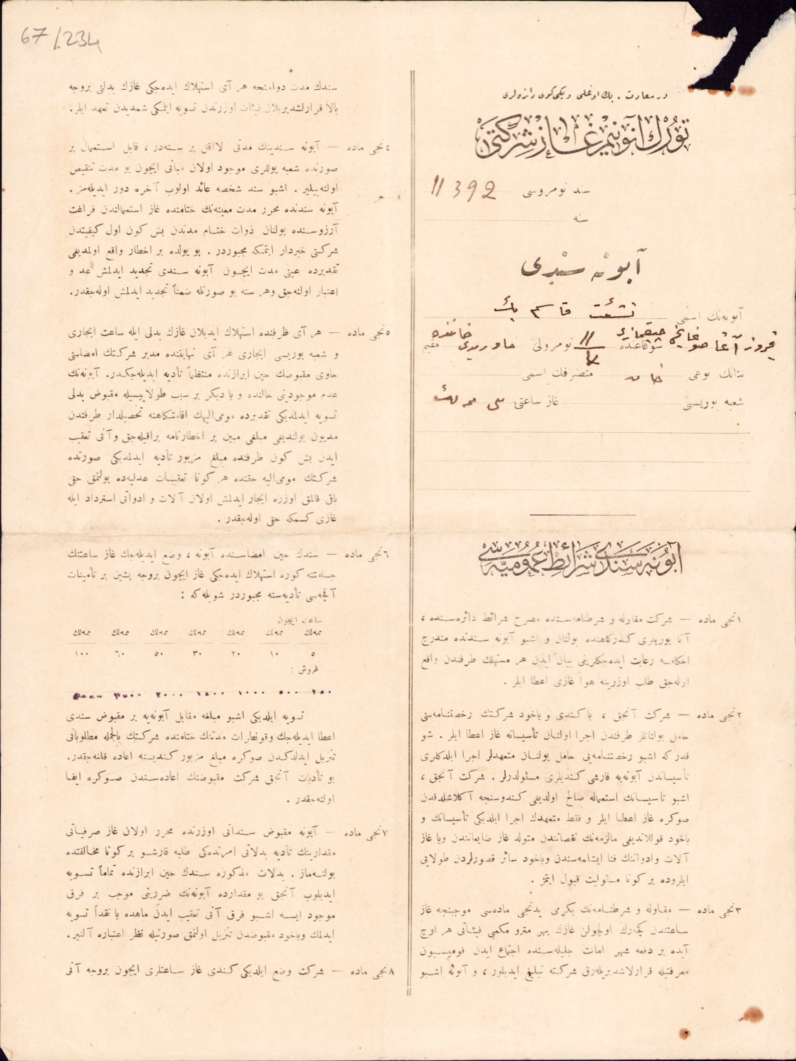 Osmanlı Türk Anonim Gazi Şirketi abone senedi, 23x31 cm