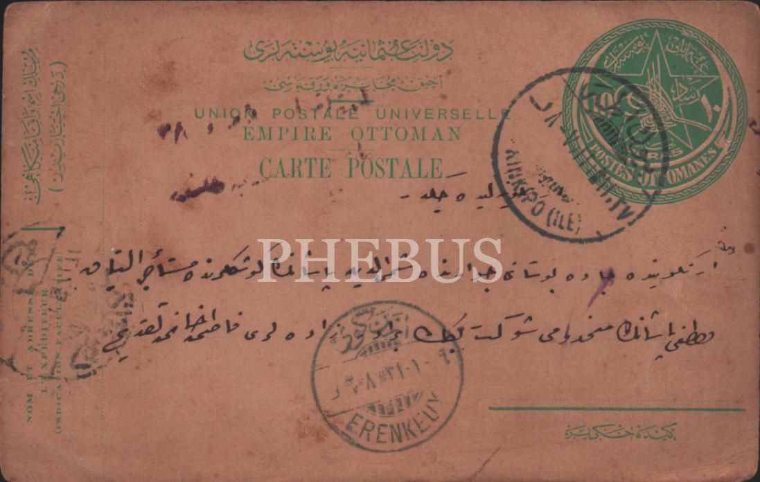 Devlet-i Osmaniye Postaları Açık Muhabere Varakaları antetli Osmanlıca-Fransızca kartpostal, 15x9 cm...