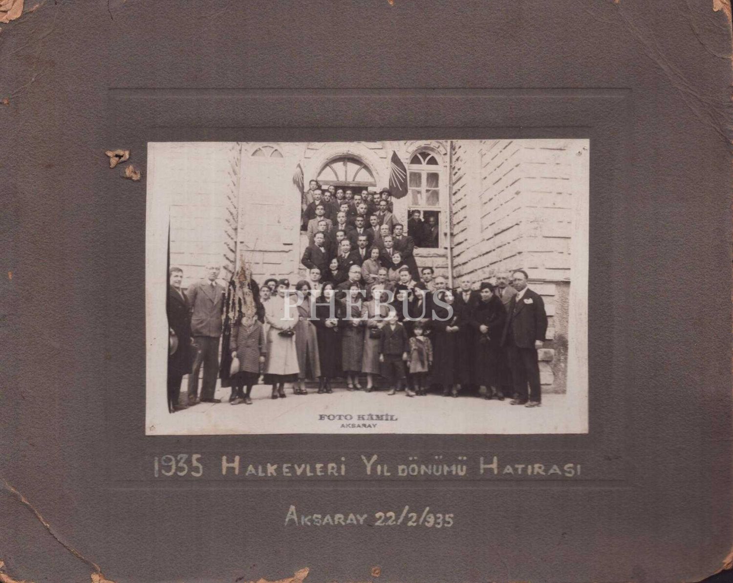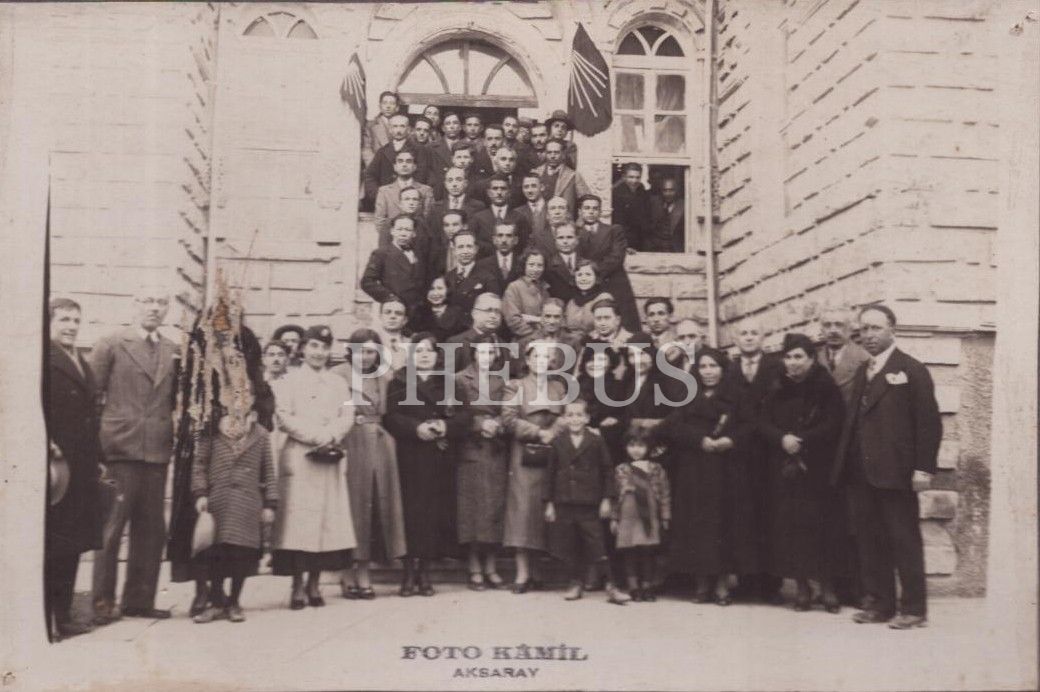 Aksaray Kaymakamı Selahattin Gedik´in de aralarında bulunduğu topluluğun "1935 Halkevleri Yıl Dönümü Hatırası", 22 Şubat 1935, "Foto Kâmil - Aksaray" damgalı, 30x24 cm...
