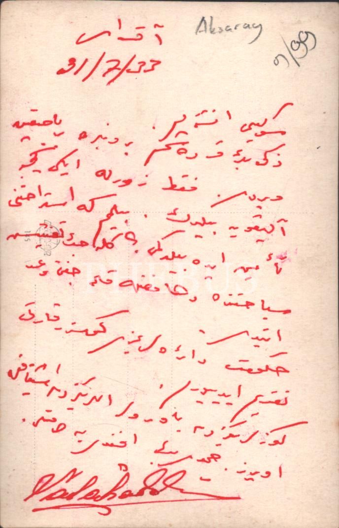 Ön yüzünde Hükümet Konağı içerisinde dairelerin yerleri üzerine isimleri yazılmış, arka yüzünde Aksaray Kaymakamı Selahattin Gedik´in eniştesine hitaben yazdığı mektup vardır.