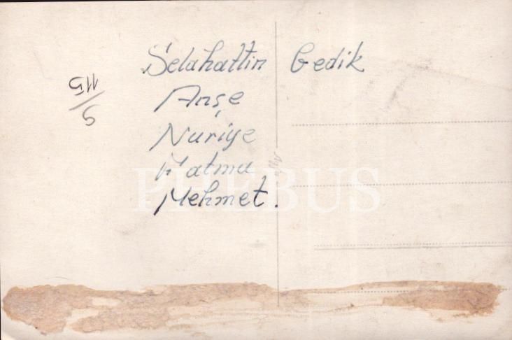 Arka yüzüne "Selahattin Gedik / Ayşe / Nuriye / Fatma / Mehmet" isimleri not düşülmüştür.