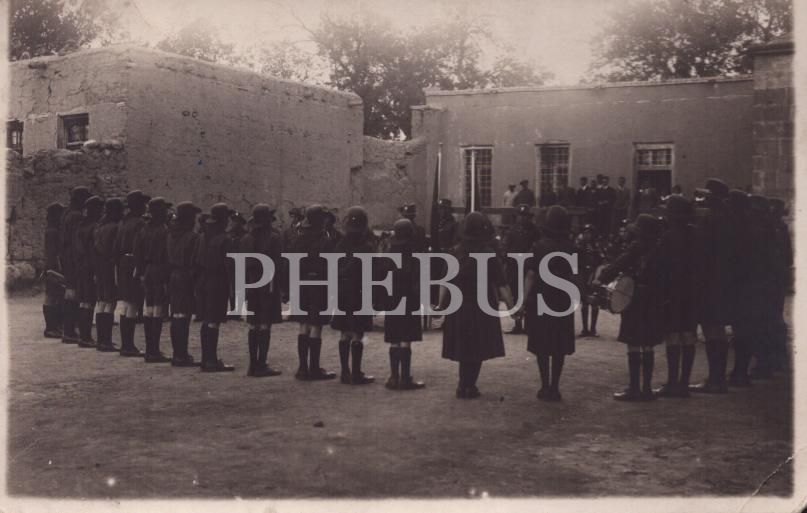 Mektepleri önünde toplanmış izciler, 14x9 cm...