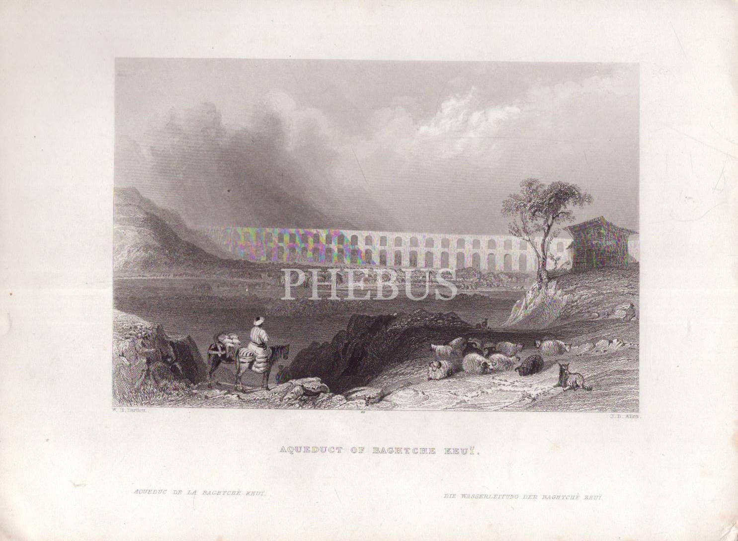 Bahçeköy Su Kemeri, "Aqueduct of Baghtcee Keui", W. H. Bartlett & J. B. Allen, 25x19 cm...