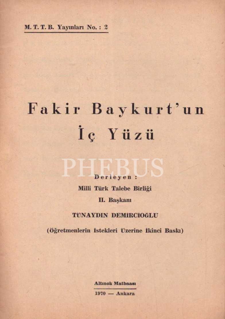 FAKİR BAYKURT´UN İÇ YÜZÜ, derleyen: Tünaydın Demircioğlu, Ankara 1970, Altınok Matbaası, 24 sayfa, 14x18 cm...
