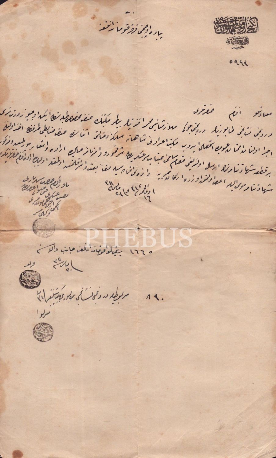 Piyade Üçüncü Fırka Kumandanlığına, Dördüncü Nişancı Taburu Dördüncü Bölük Mülazımatçısı Mehmet Efendi Bey´in Baytar Mektebi´nden aldığı şehadetnâmeyi bildirir yazı, 21x34 cm...