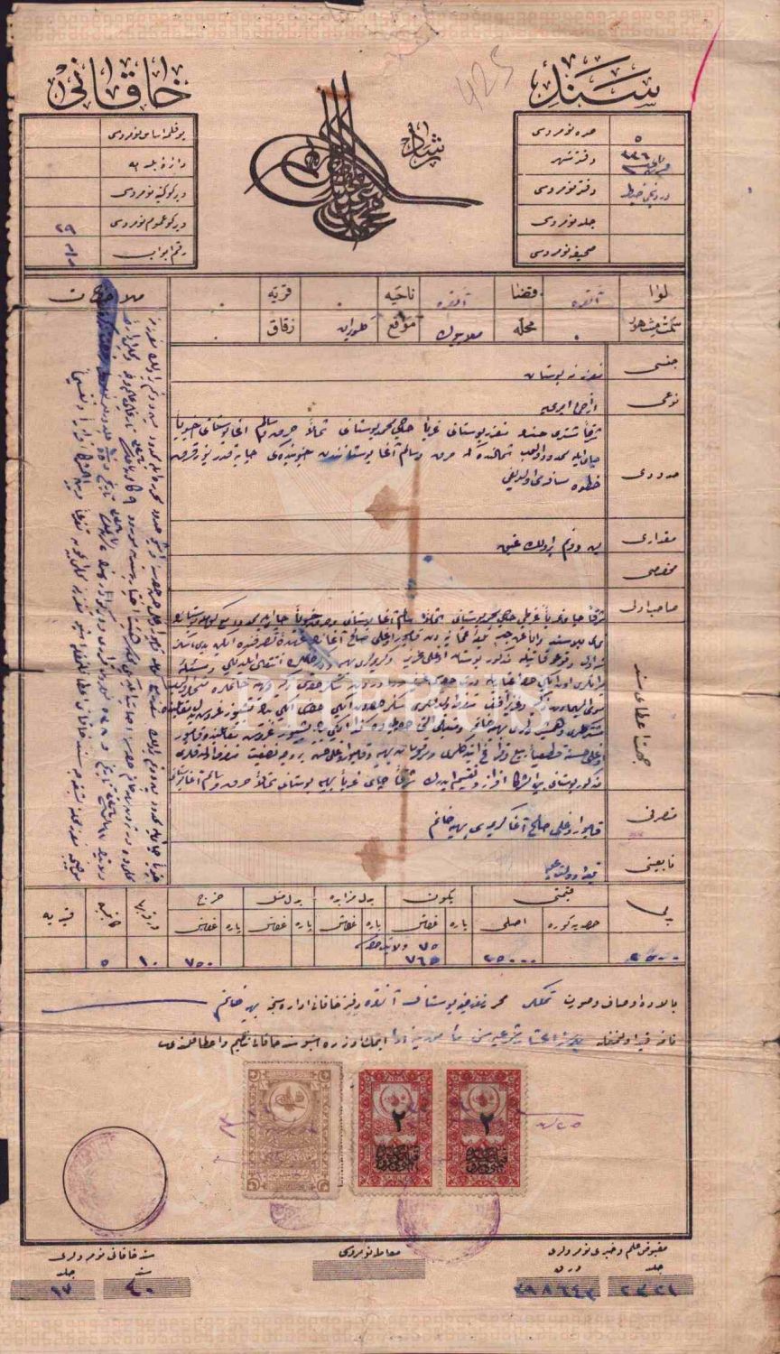 Salih Ağa kızı Mehbiye Hanım adına kayıtlı, 1332 tarihli Ankara Gülören´de bostana ait Sened-i Hakani, 22x38 cm...