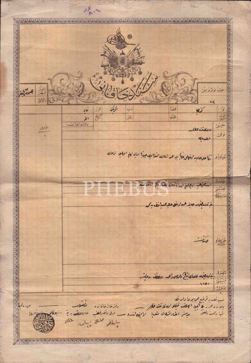 2 adet Halil Hüseyin bin Mehmed Efendi adına kayıtlı, 1314 tarihli Kütahya´da arsaya ait Sened-i Hakani, 28x41 cm...