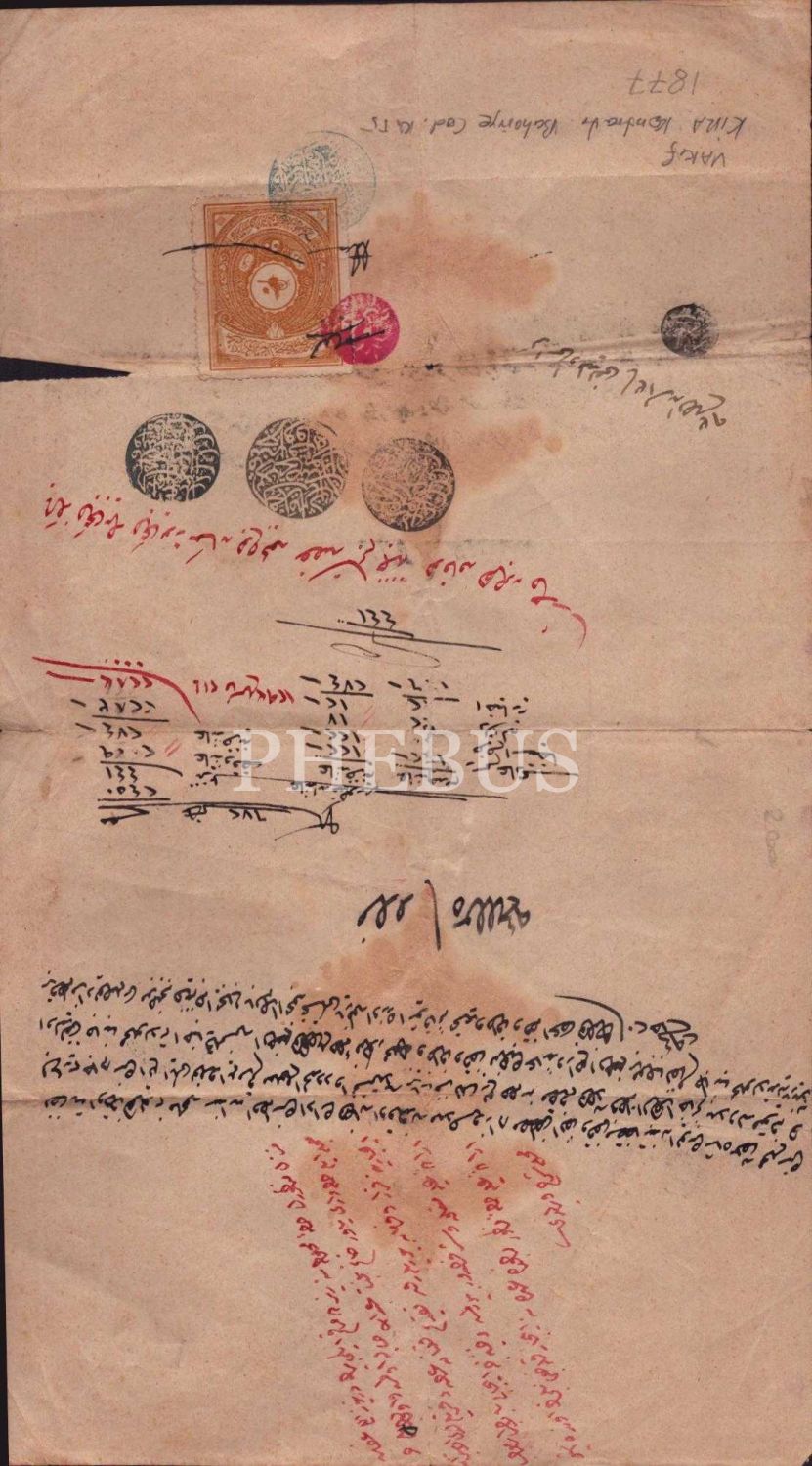 Kadıköy Bahariye Caddesi´nde bulunan dairenin 1877 tarihli kira kontratı, 20x34 cm...