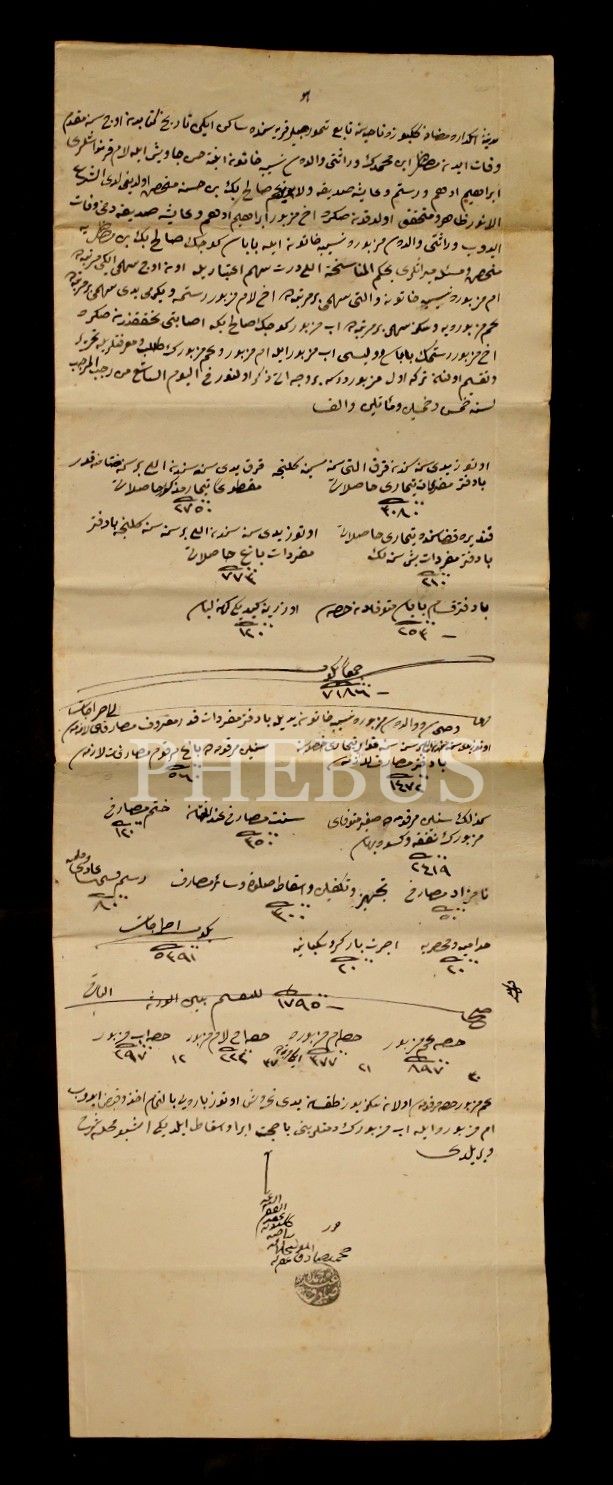 Mustafa Bin Mehmet Bey´in vefatı üzerine miras taksim belgesi, 35x50 cm...