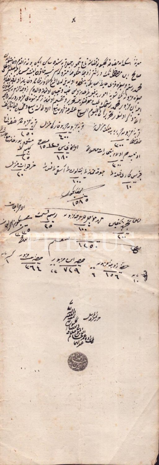 Salih Bin Mustafa Bey´in veraseti üzerine miras taksim belgesi, 34x24 cm...