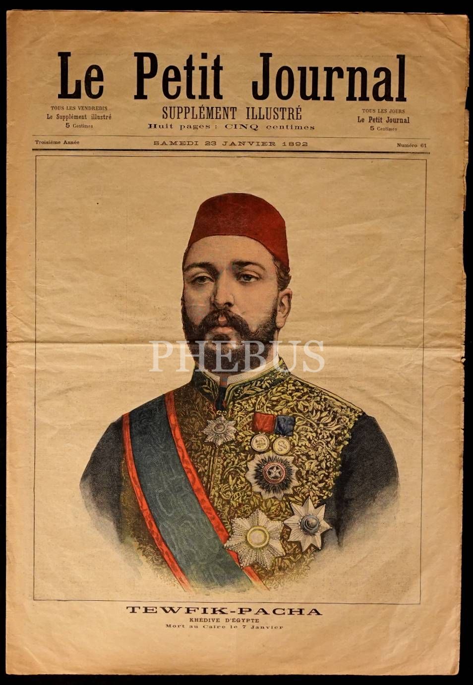Mısır Hidivi Tevfik Paşa kapaklı Fransızca Le Petit Journal gazetesi, 20 Ocak 1892, 8 sayfa, 31x44 cm...