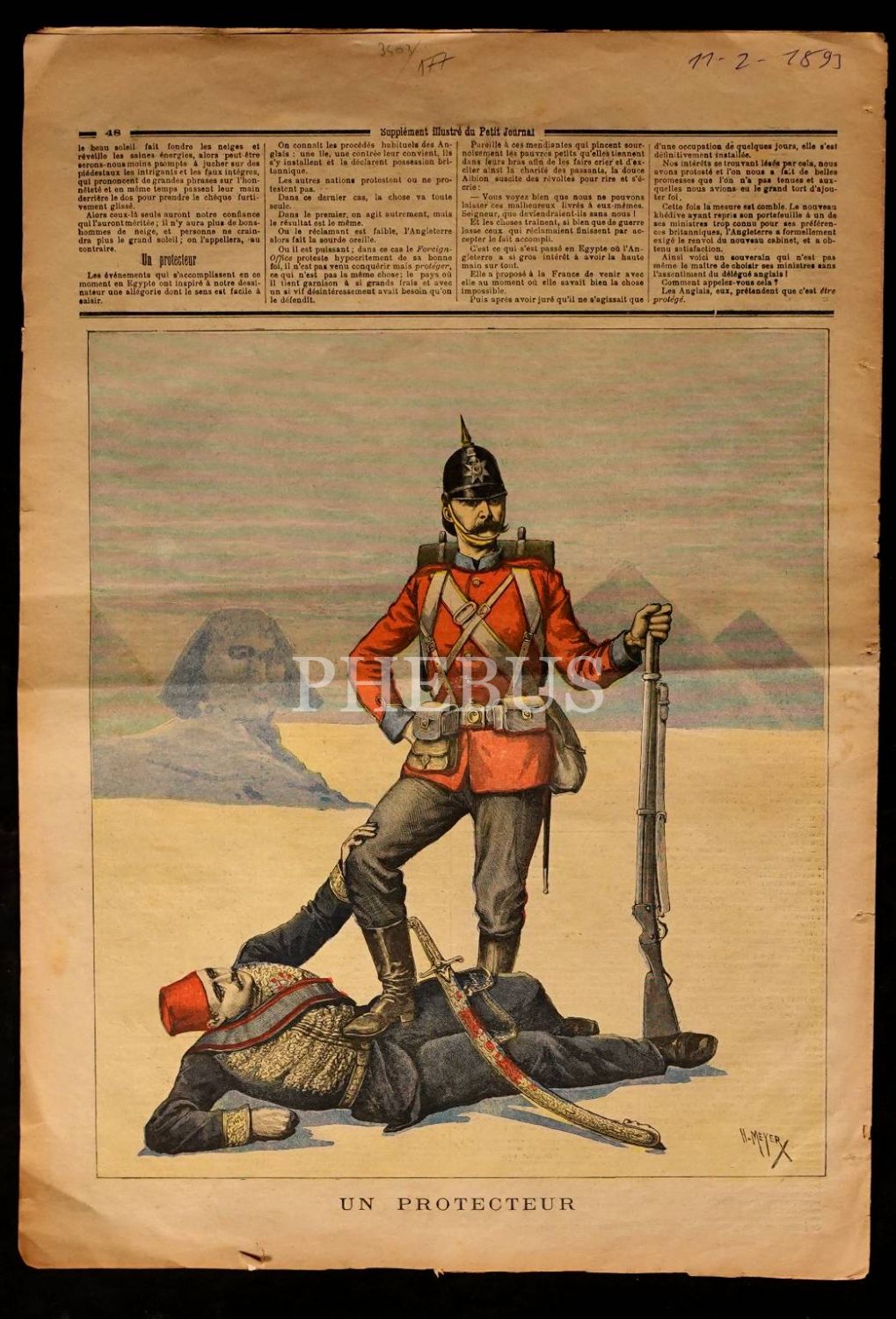 Kayzer Wilhelm ve Mısır Hidivi görselli arka kapağıyla Fransızca Le Petit Journal gazetesi, 11 Şubat 1893, 8 sayfa, 30x45 cm...