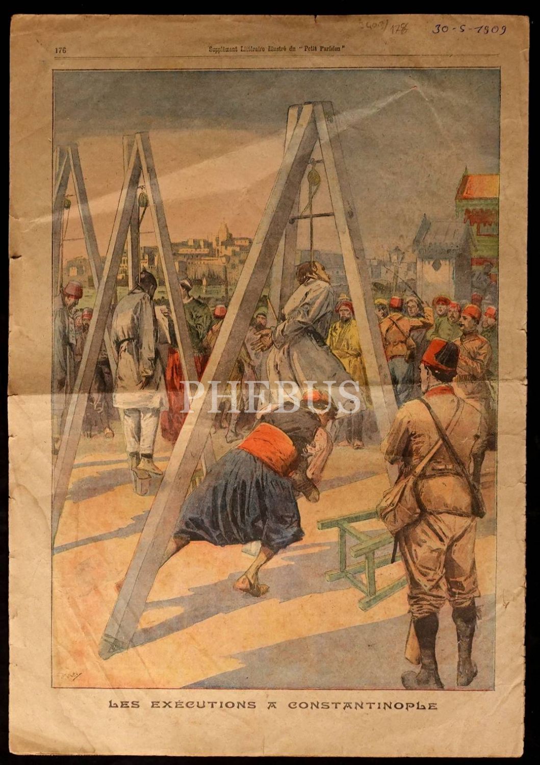 "İstanbul´da İdamlar" konulu arka kapağyla Fransızca Le Petit Journal gazetesi, 30 Mayıs 1909, 8 sayfa, 31x44 cm...