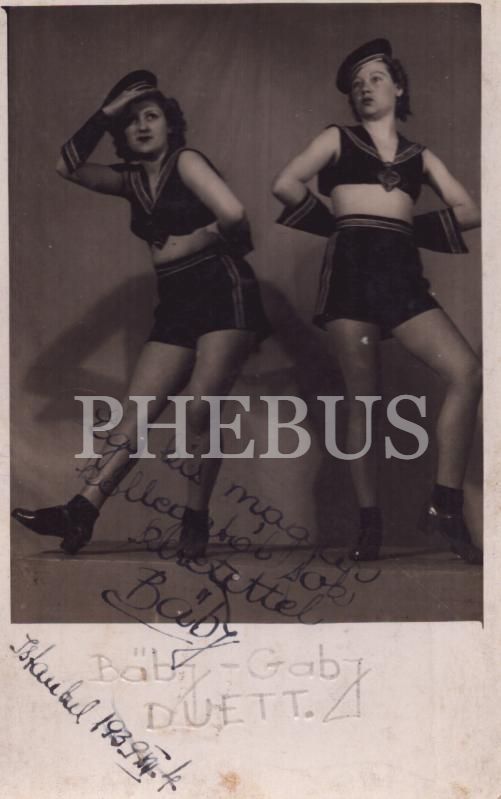İki Fransız sahne yıldızının 1939 yılında İstanbul´da aldırdıkları, Fransızca ithaflı ve imzalı stüdyo hatıra fotoğrafı, 9x14 cm...