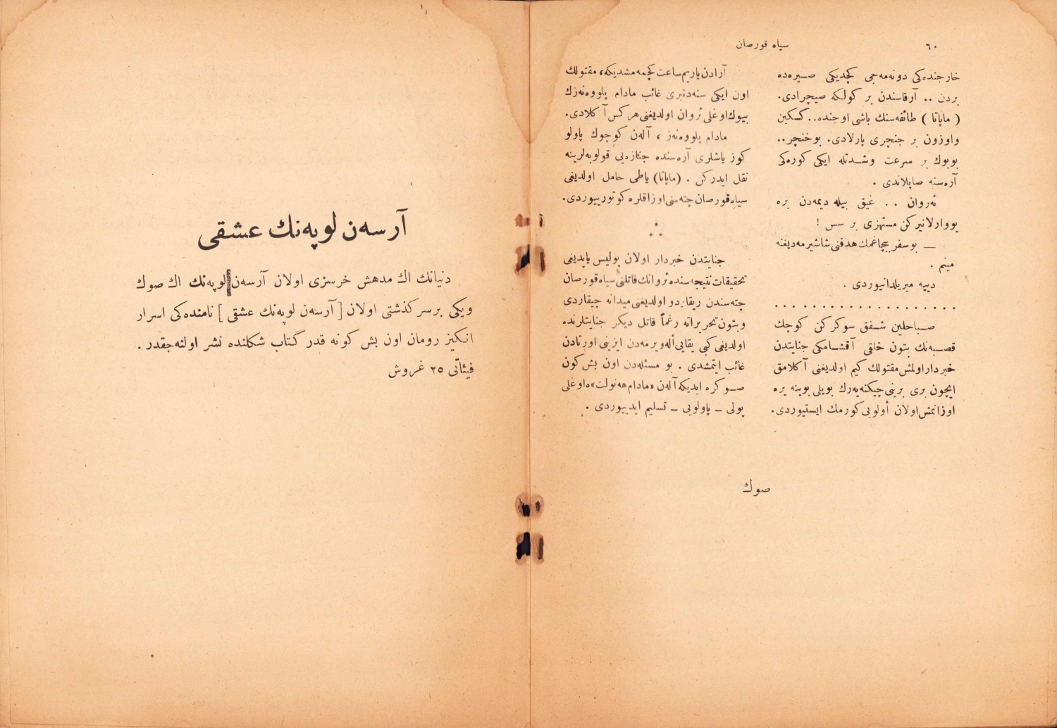 Osmanlıca Siyah Korsan Deniz Çocuğu, Kemaleddin, Orhaniye Matbaası, İstanbul, 1341, 61 sayfa, 16x24 cm