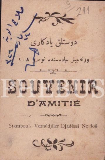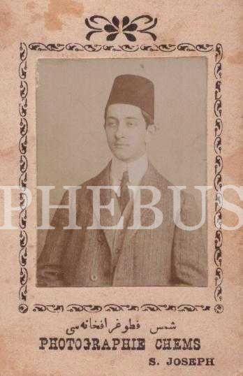 Genç delikanlının stüdyo hatıra fotoğrafı, Photographie Chems (S. Joseph), Stamboul, 6x10 cm...