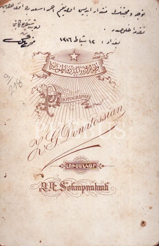 Papyonlu beyefendinin stüdyo hatıra kabin fotoğrafı, H. Z. Donatossian (Baghdad), 11x17 cm...