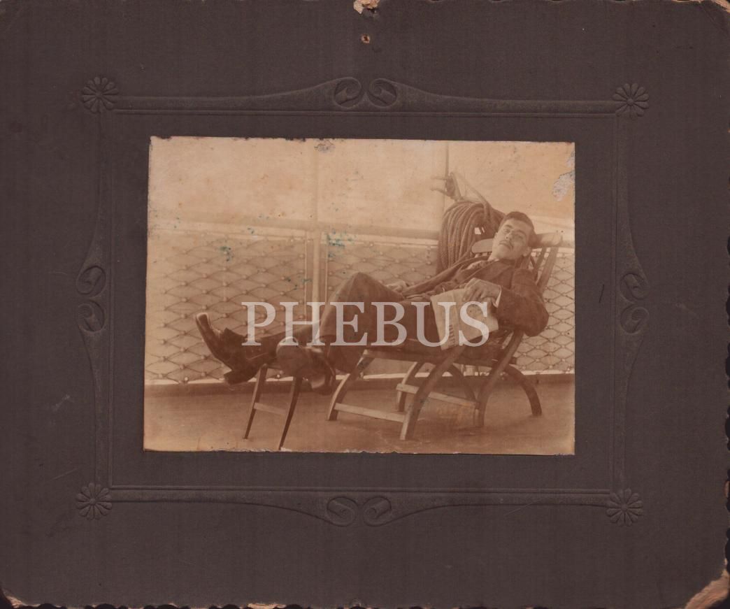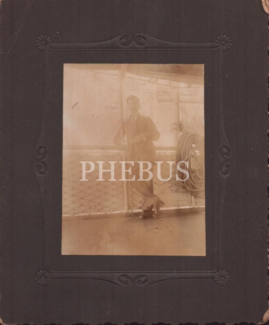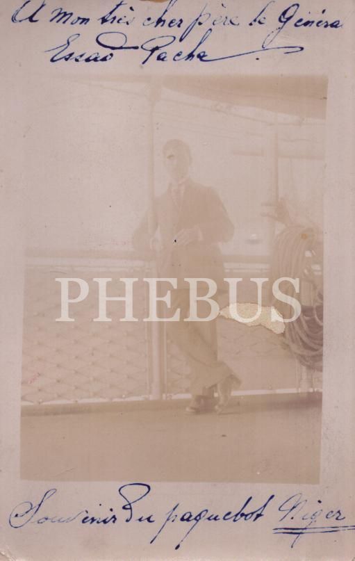 Nil-Afrika seferi esnasında gemi güvertesinde fotoğraf çektiren beyefendinin, bir kısmı "Esad Paşa"ya Osmanlıca ve Fransızca ithaflı seyahat hatıraları, ortalama 14x9 cm...